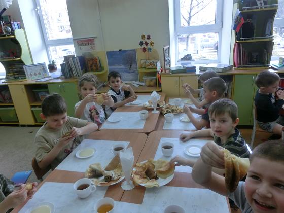 После того, как все вдоволь повеселились, в гости к детям пришла Масленица и угощала всех блинами. Воспитанники детского сада в восторге от подобных мероприятий.