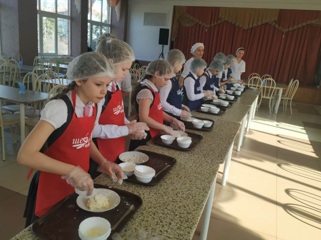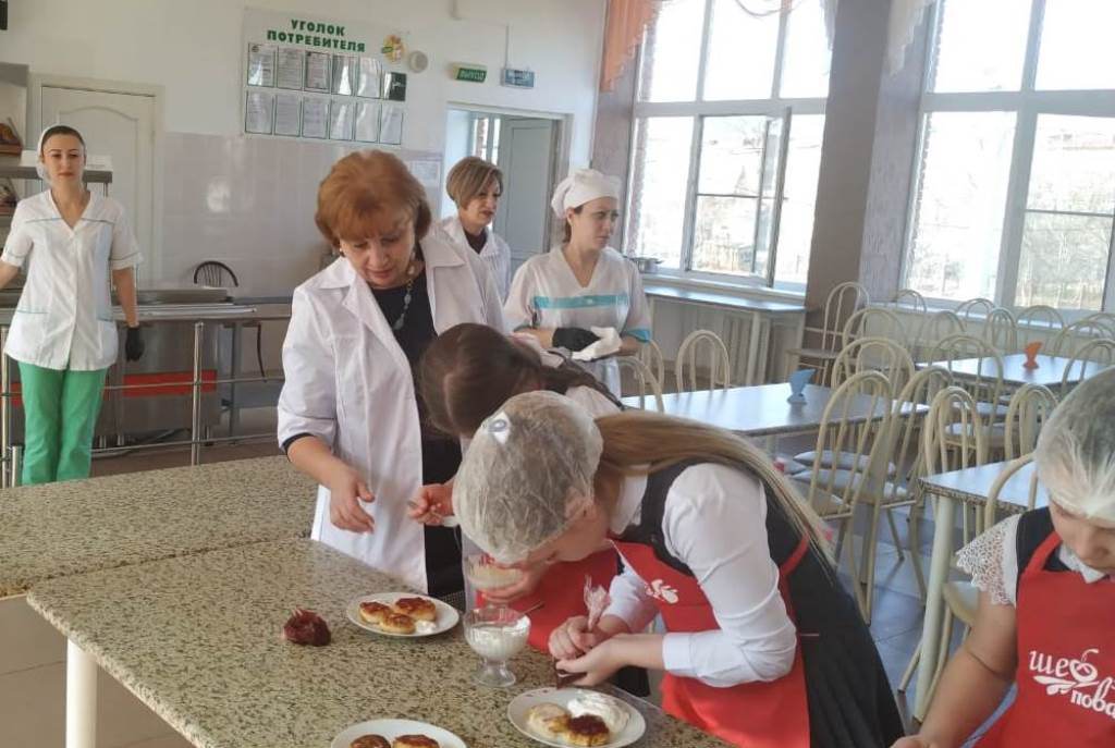В обжарке сырников школьникам помогали работники столовой. Дегустация готовой выпечки сопровождалась концертом, ребята