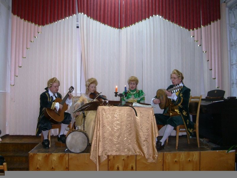 22 октября 2014Каждое воскресенье в читальном зале библиотеки музыкальные вечера проводит камерный ансамбль старинной музыки «Возрождение» под руководством Николая Макаренко. Концерты проходят при свечах, в старинных костюмах, количество участников от 2 до 8 человек.