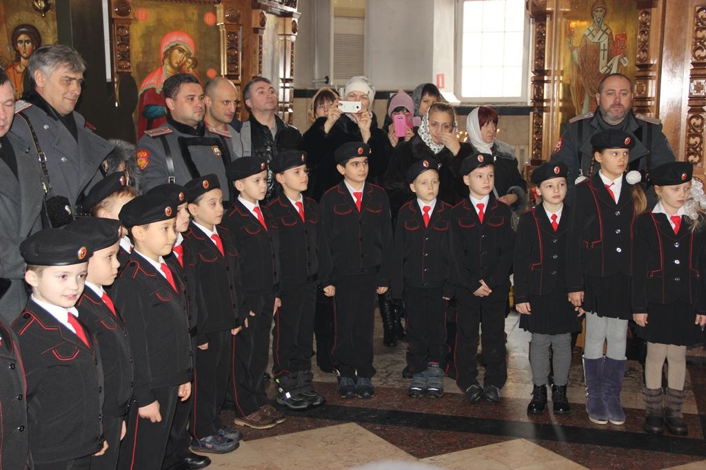 Нарядные и взволнованные ребята переступили порог Храма Рождества Христова. По благословлению настоятеля Храма отца Александра, под молитву отца Дмитрия, в присутствии атамана Западного округа сотникаЕвгения Мудрак, заместителя атамана Екатеринодарского казачьего обществаЮрия Шмелько, представителей казачьего войска и администрации Западного округа, директора школыСветланы Григорьевой, классного руководителяОльги Скляровой и родителей юные казачата произнесли клятву.