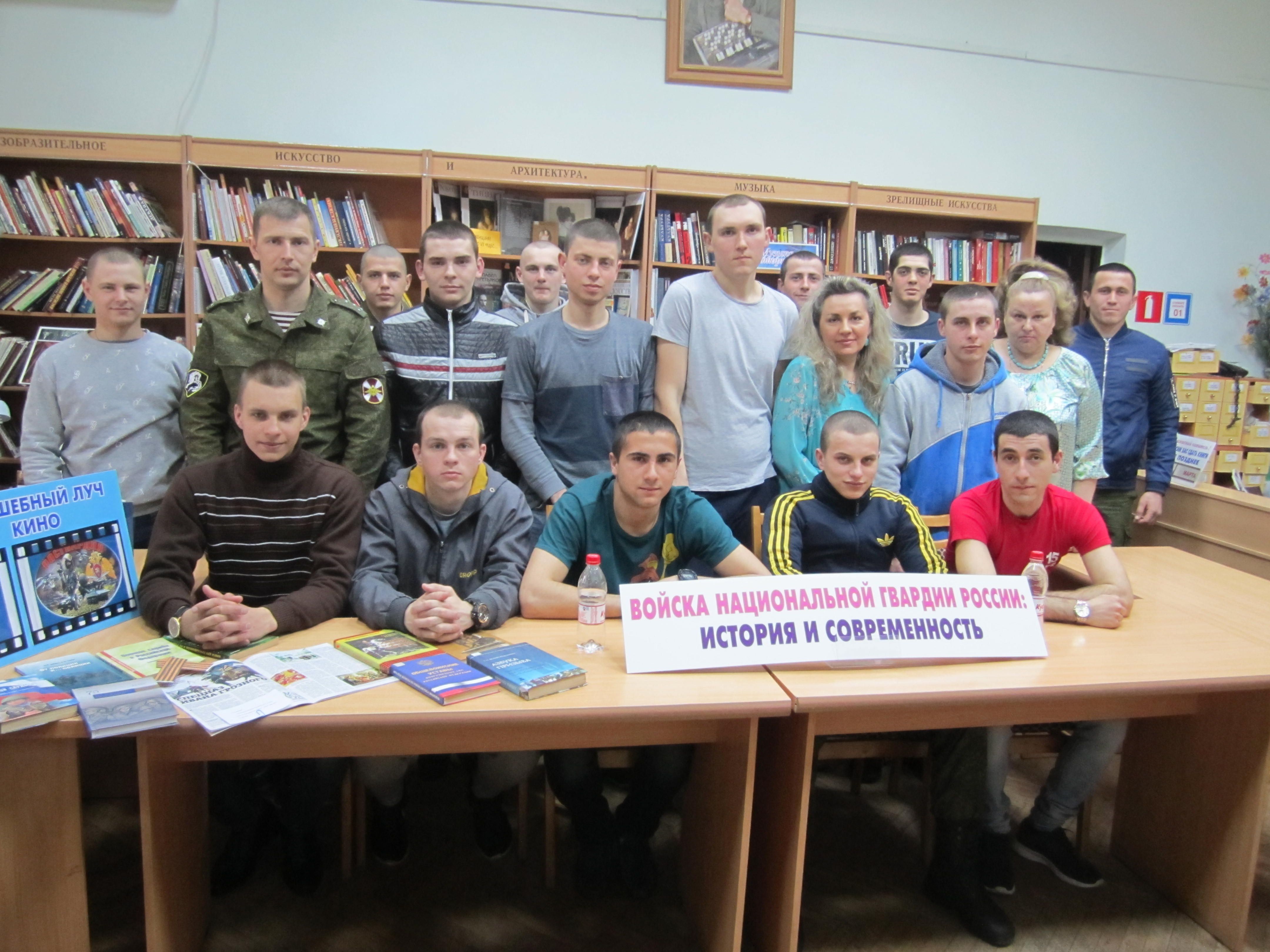 К уроку библиотекари подготовили видеопрезентацию «От внутренней стражи до Национальной гвардии. Шаги истории», библиотечную выставку, представляющую книги и аудиовизуальные материалы, 2 документальных фильма «Служу Отечеству» и «Росгвардия. История. Задачи. Перспективы», отрывки из которых стали хорошей иллюстрацией к их сообщениям.