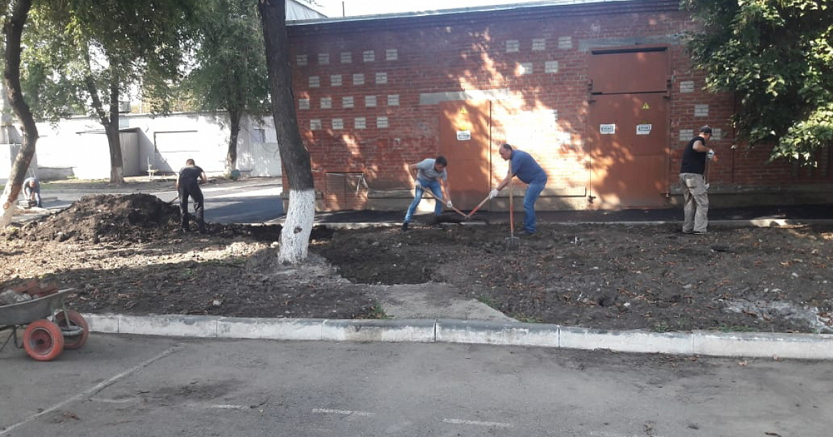 Силами бригады в 15 человек выполнена планировка грунта, сбор и вывоз строительного мусора во дворе. В рабочем процессе была задействована спецтехника.