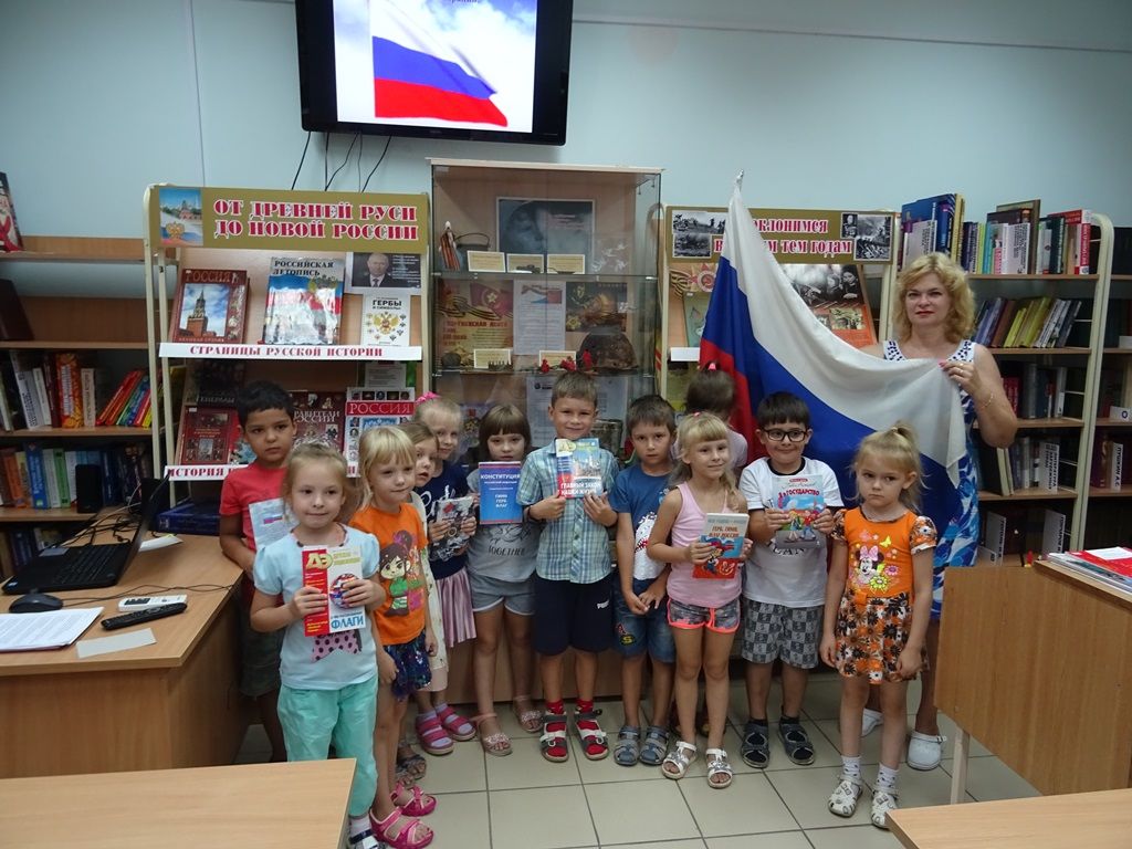 Очередная встреча с юными читателями библиотеки № 35 была посвящена Дню Государственного флага России. Ребятам из детского сад №16 рассказали об истории возникновения символа России, показали видеопрезентацию «Государственный флаг России».
