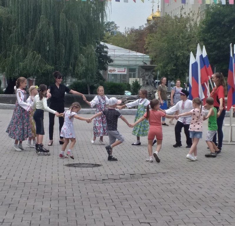 Ребята совершили увлекательное путешествие на виртуальном паровозике по историческим местам нашей Родины и странам дальнего зарубежья, вступили в вымышленный диалог со сверстниками из иностранных государств и рассказали о традициях, обычаях и достопримечательностях России. Программа завершилась танцевальным флэшмобом под песню «Флаг наш бело-сине-красный!».