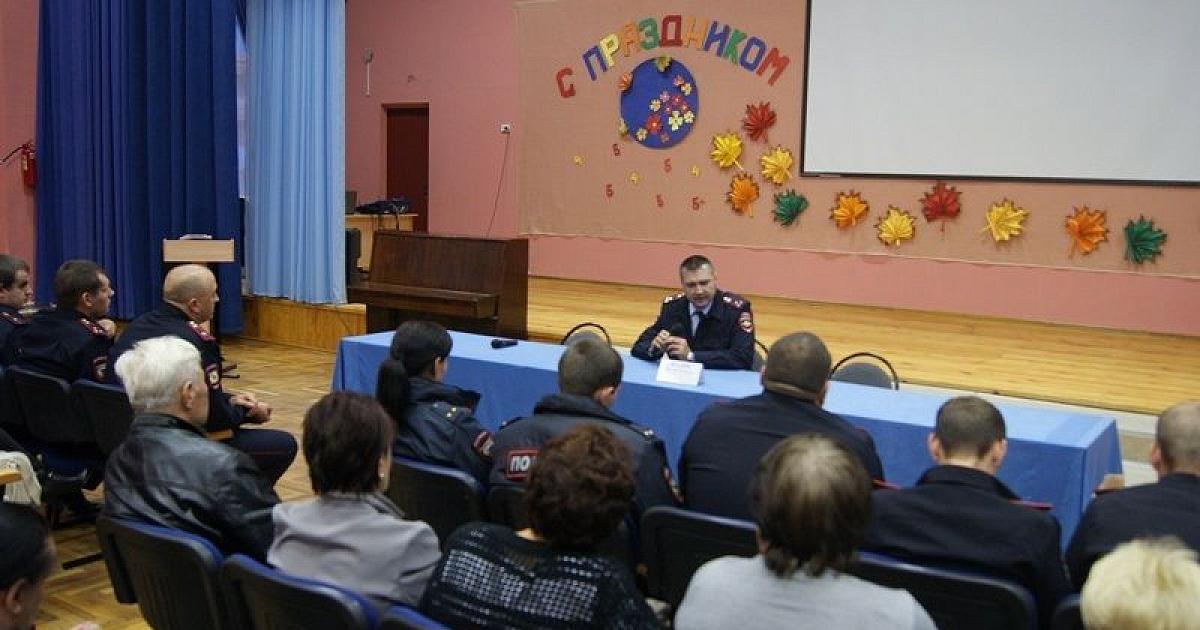 23 октября 201522 октября в МОУ СОШ № 101 состоялась встреча жителей Юбилейного микрорайона с представителями отдела полиции (мкр. Юбилейный) Управления МВД России по городу Краснодару.