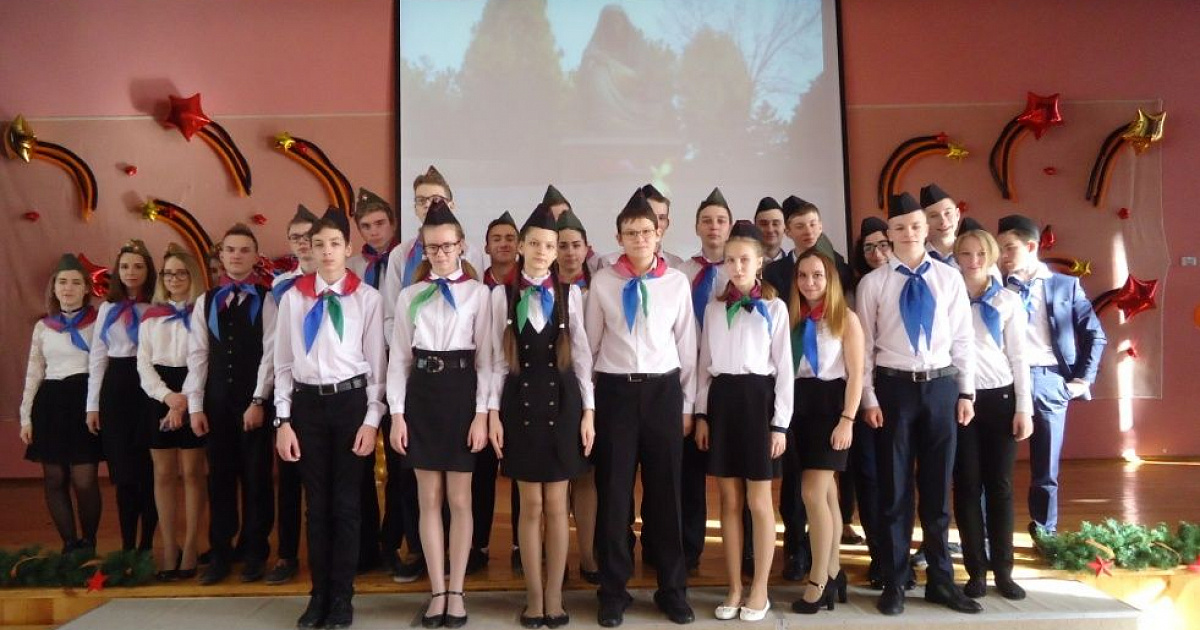 Учащиеся школы исполнили песни «И всё о той весне…», «Мальчишки Ленинграда», «Ордена».