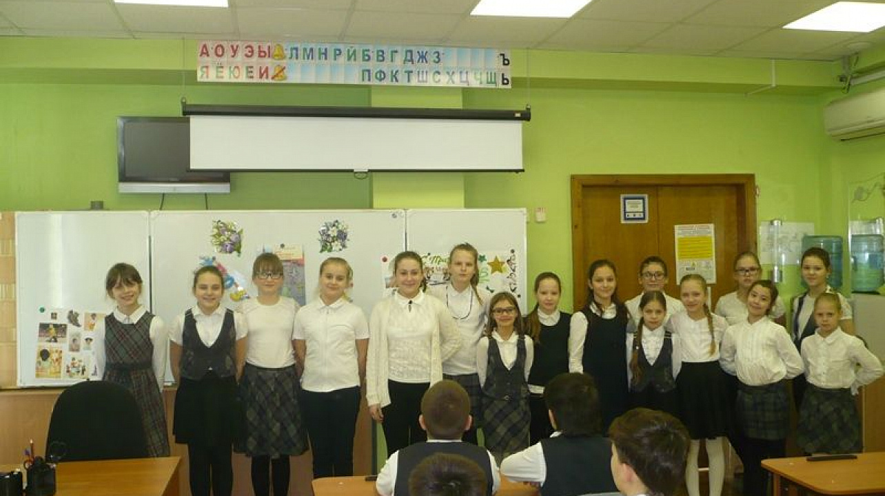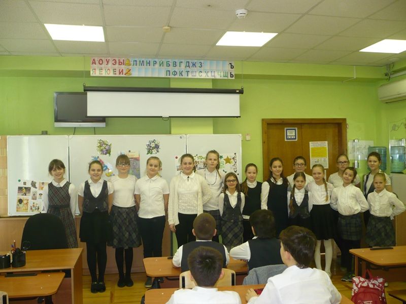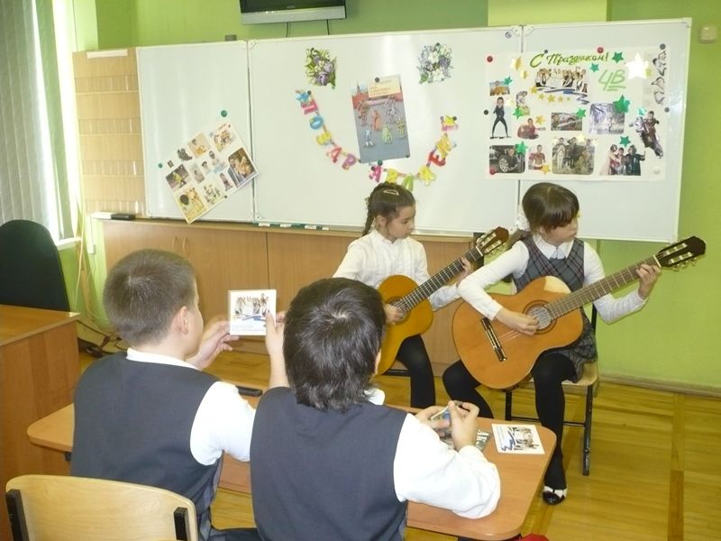 Девочки 4 «В» класса своими силами подготовили праздник для своих одноклассников — будущих защитников Отечества. Кравец Дана и Синицына Арина играли на гитаре и пели, Гончарова Ирина танцевала. Мальчикам были вручены открытки с наилучшими пожеланиями и сувениры, сделанные собственными руками. Классный час и праздник удались на славу!