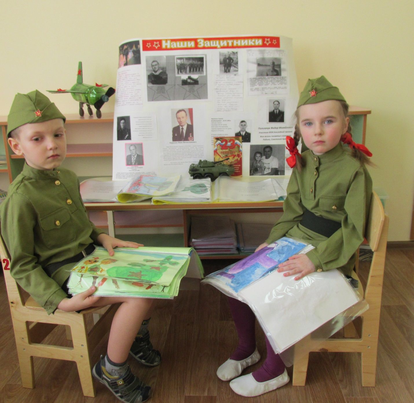 В рисунках дети передали свои впечатления о защитниках нашей Родины, изобразили отважных солдат, самолеты, танки.