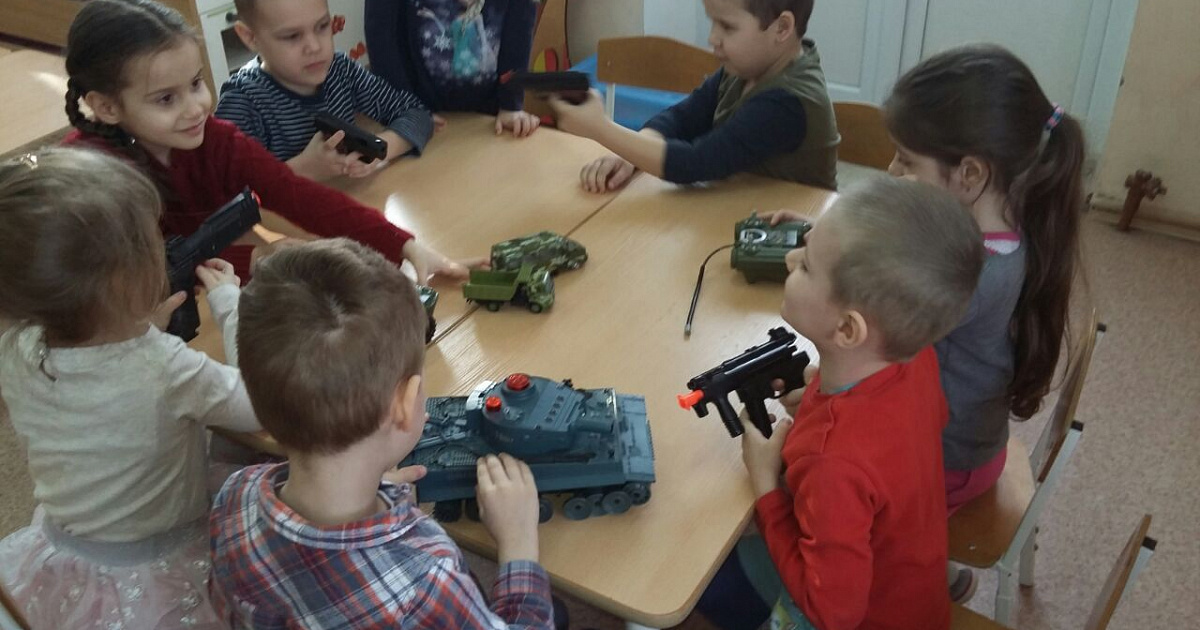 В детском саду №12 в рамках патриотического месячника с детьми средней группы была проведена беседа на тему: «Виды оружия и военная техника».