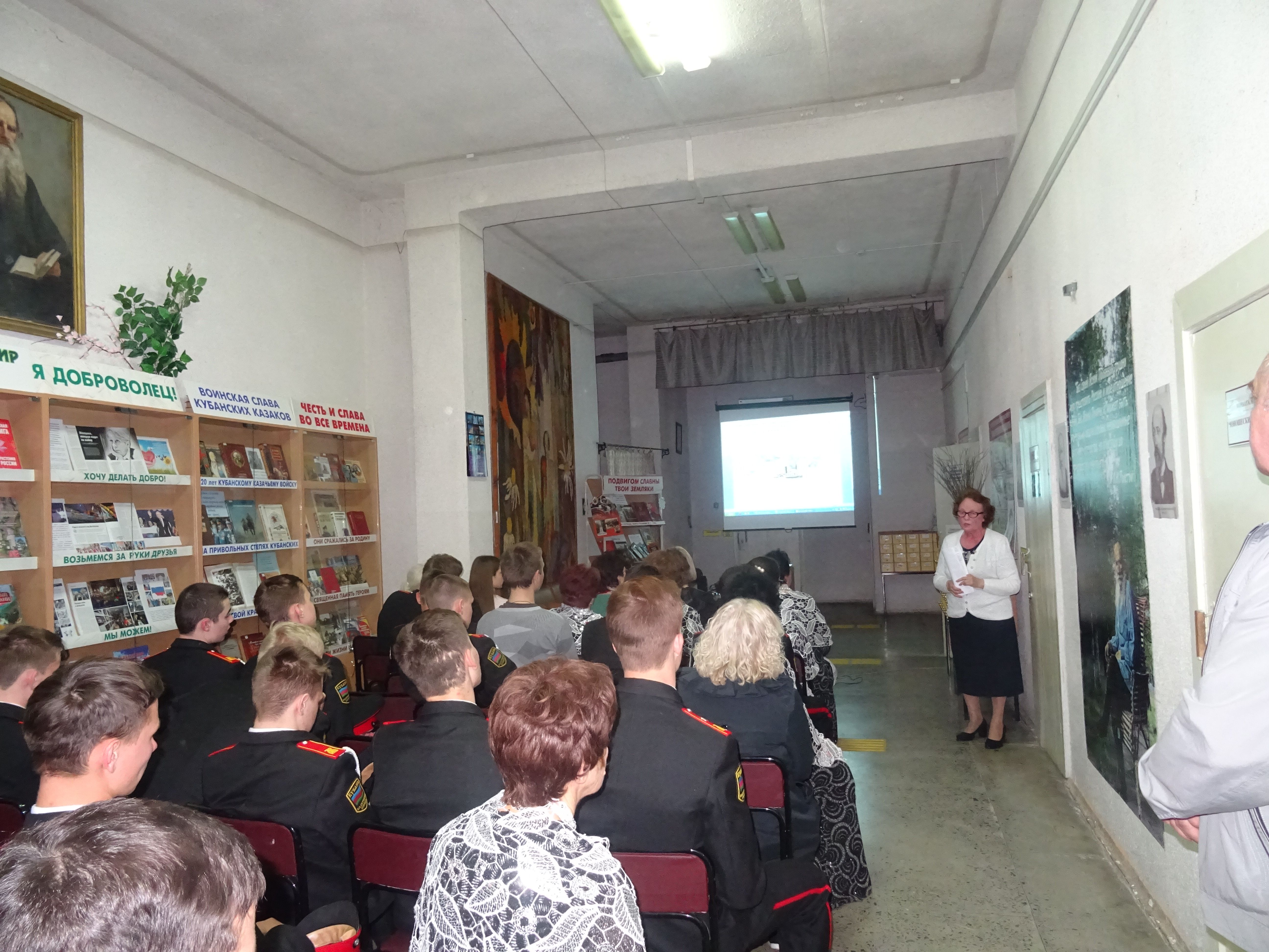На мероприятии присутствовали почетные гости, курсанты кадетского казачьего корпуса, курсанты Краснодарского высшего военного авиационного училища летчиков, инвалиды Западного округа г. Краснодара и читатели библиотеки. Всего мероприятие посетили 98 человека.