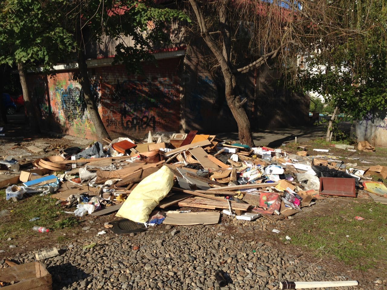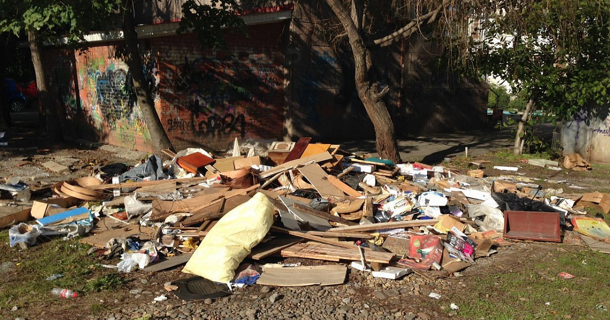 В результате этой работы на земельных участках под демонтированными металлическими гаражами оставляется бытовой, крупногабаритный и строительный мусор.