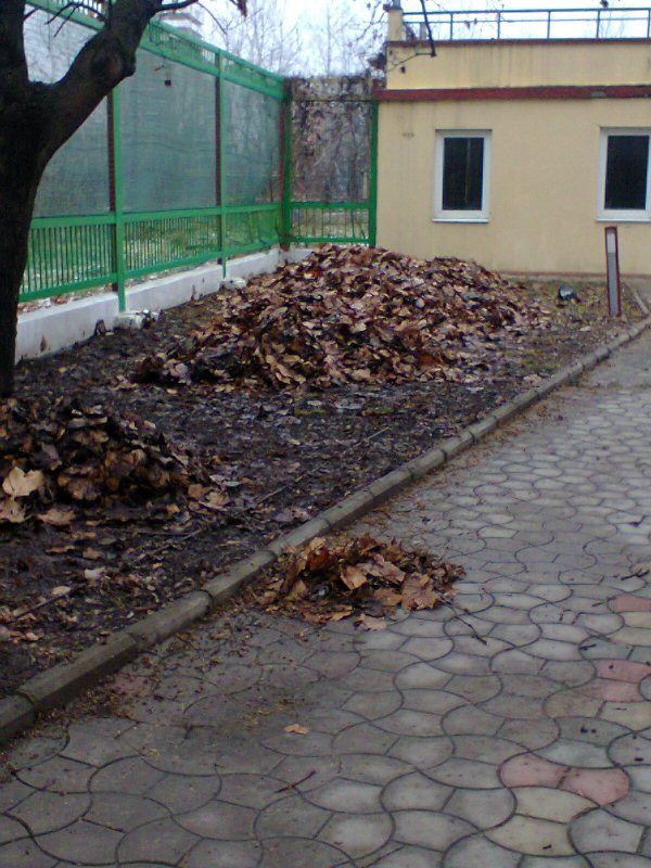 Выполнялись работы по сбору сухих веток, измельчению их в щепу, сгребанию и вывозу листвы.