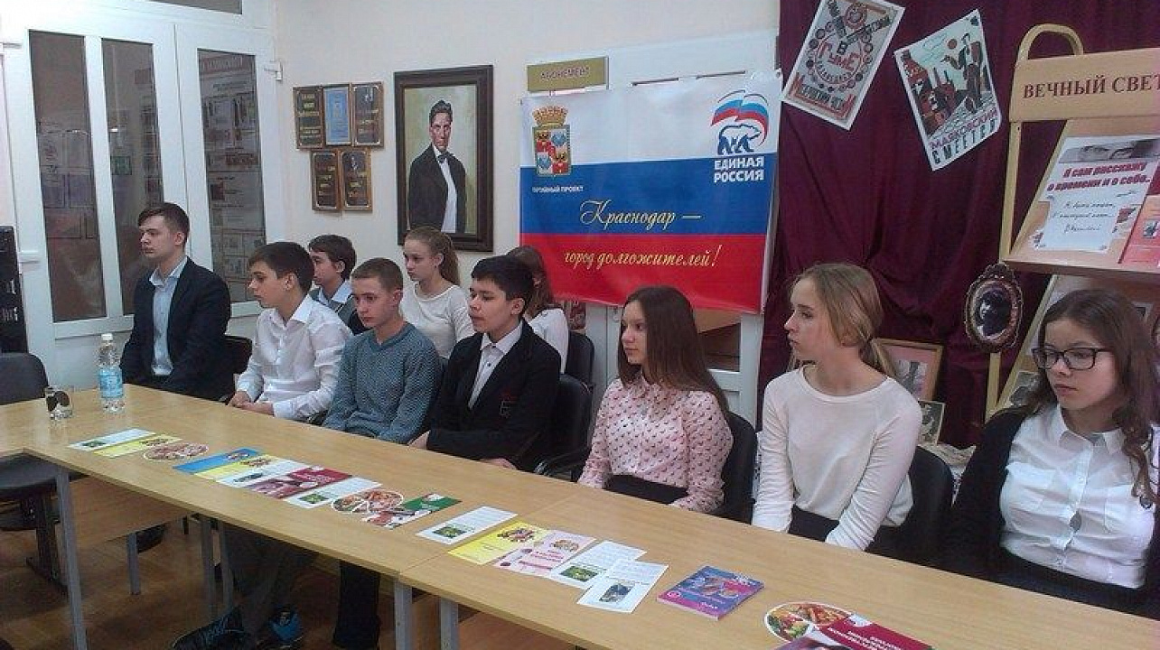 На дискуссионной площадке «Краснодар-город долгожителей» выступил ветеран Великой Отечественной войны Иван Лотышев и представил школьникам брошюру, автором которой он является «Стань долгожителем». Молодость и мудрость выработали совместный план работы по активизации спортивной работы, так в читальном зале библиотеки был создан уголок любителей шахмат.
