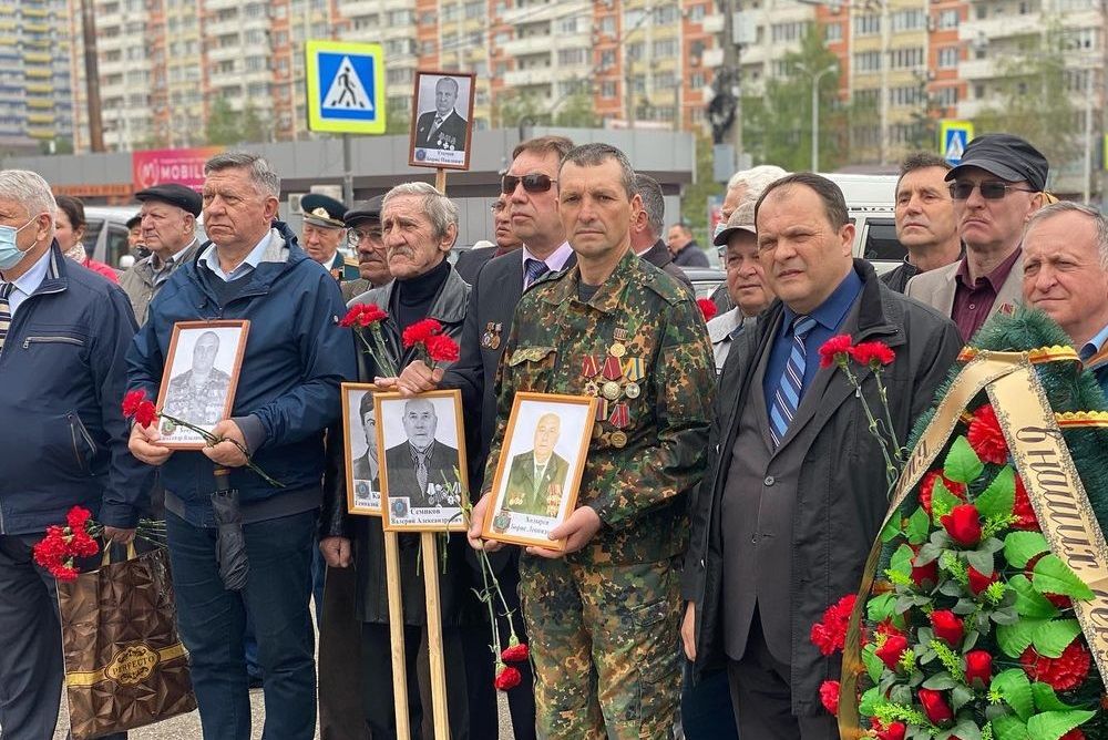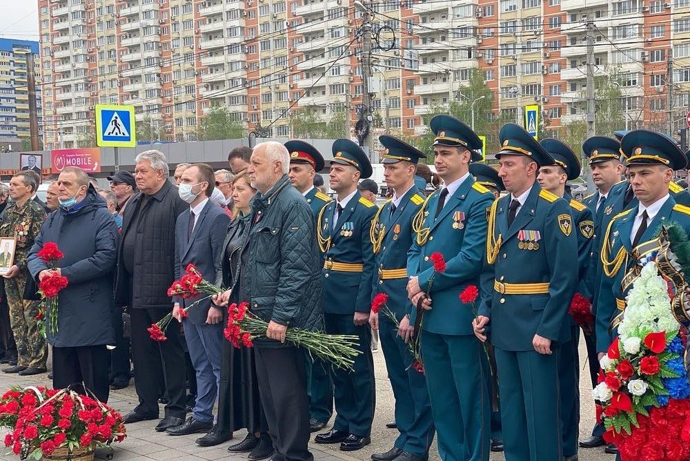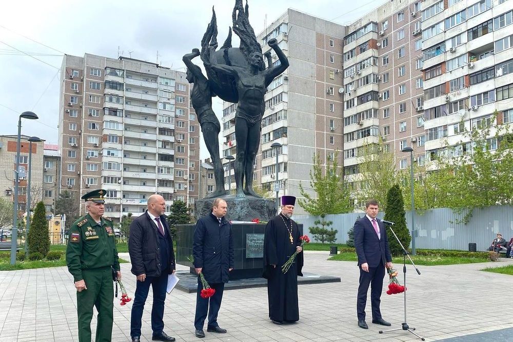 Собравшиеся почтили ушедших из жизни минутой молчания и возложили цветы и венки к монументу.