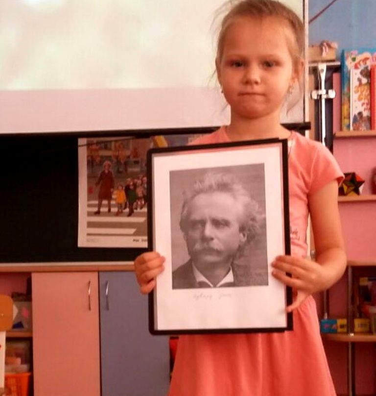 Дети познакомились не только с музыкальным творчеством композитора, но и его Родиной, которая вдохновляла композитора на создание великих музыкальных шедевров. На фоне музыки сюиты «Пер Гюнт» — «Утро» дети посмотрели фильм о природе Норвегии. Побывав в пещере горного короля, узнали о жизни фантастических злых существ. Посмотрев прекрасный «Танец Анитры», познакомились с балетным танцем. Услышав «Песню Сольвейг», узнали о верности и преданности. Дети закрепили свои знания о симфоническом оркестре, прослушав части музыкального произведения «Пер Гюнт».