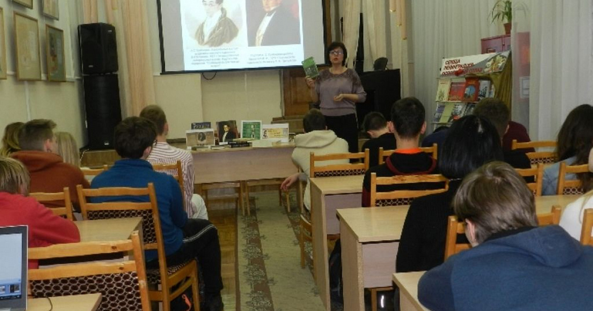 Библиотекарь рассказала собравшимся о биографии и творческом пути писателя, об истории создания самой знаменитой его комедии «Горе от ума». Также отметила его особую роль в отечественной литературе, как родоначальника жанра трагической комедии, отметив, что пьеса «Горе от ума» до сих пор является одной из наиболее популярных театральных постановок в России.
