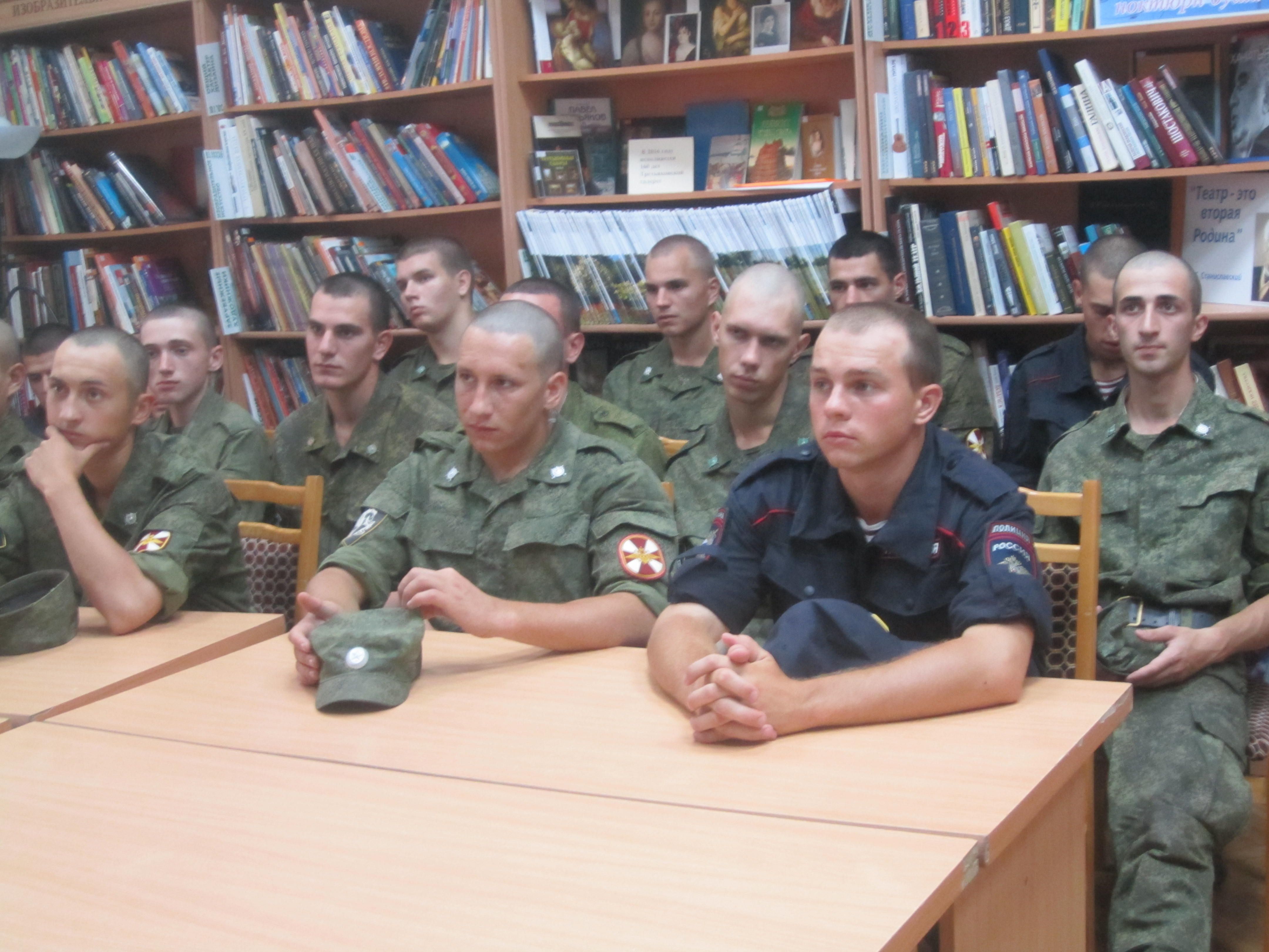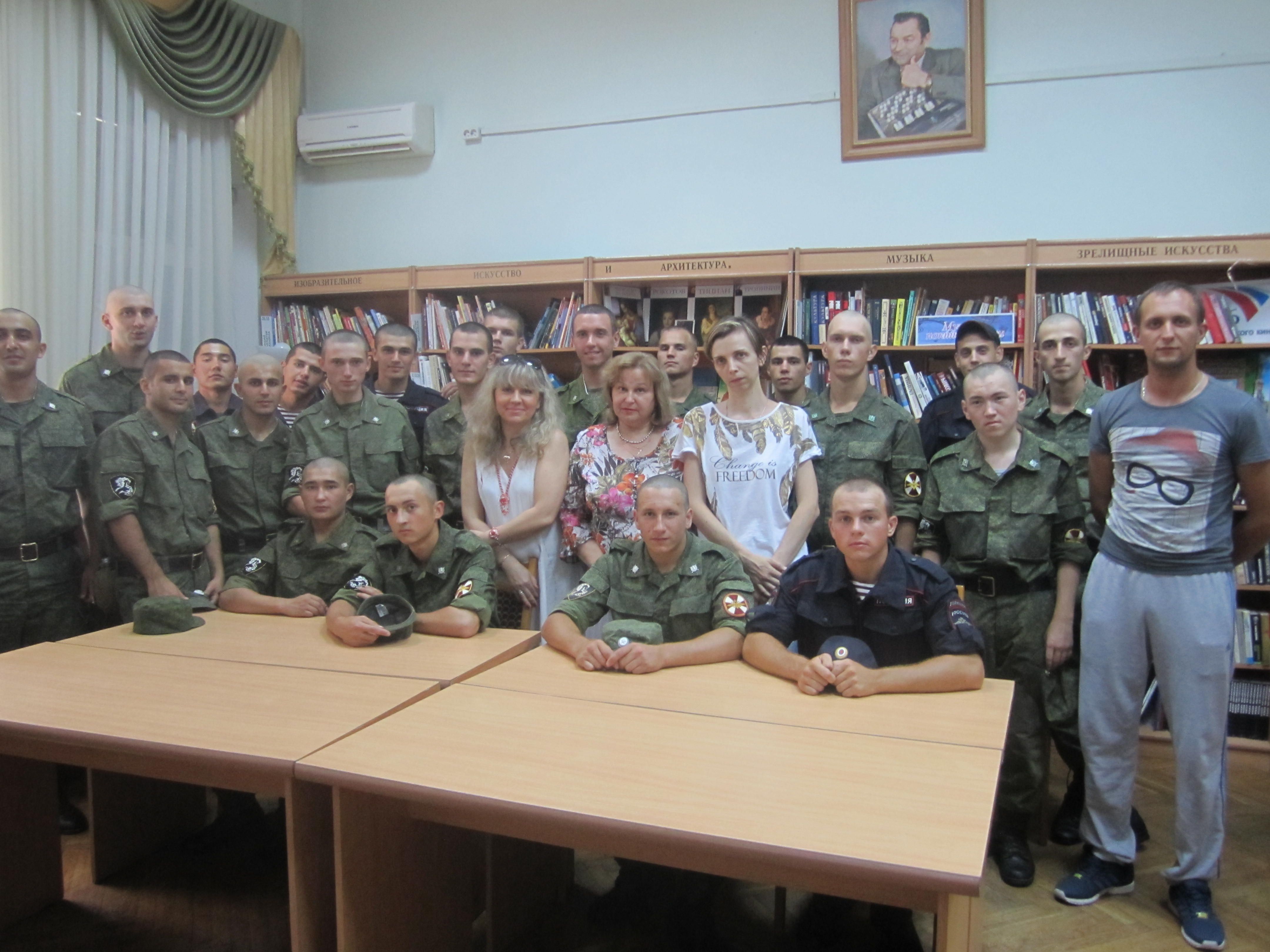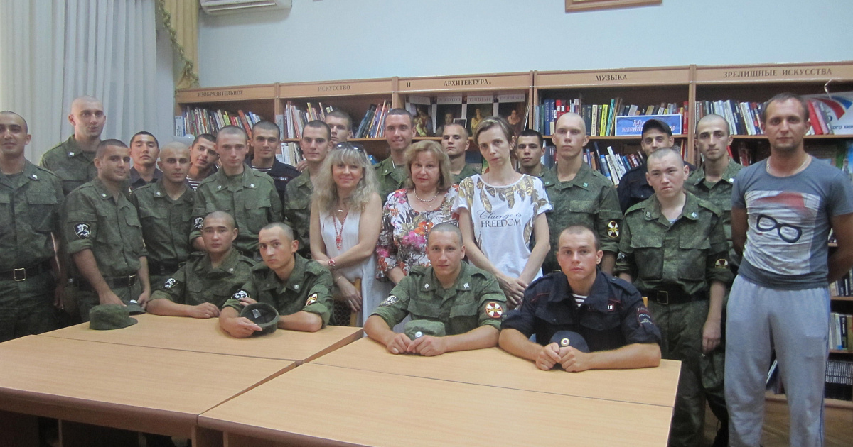27 июля 2016Сотрудники отделов литературы по искусству и справочно-информационной службы библиотеки им. Н. А. Некрасова в рамках артпроекта «Киноремарка» провели литературную гостиную «Душа уставшая моя…» для военнослужащих воинской части 6820.