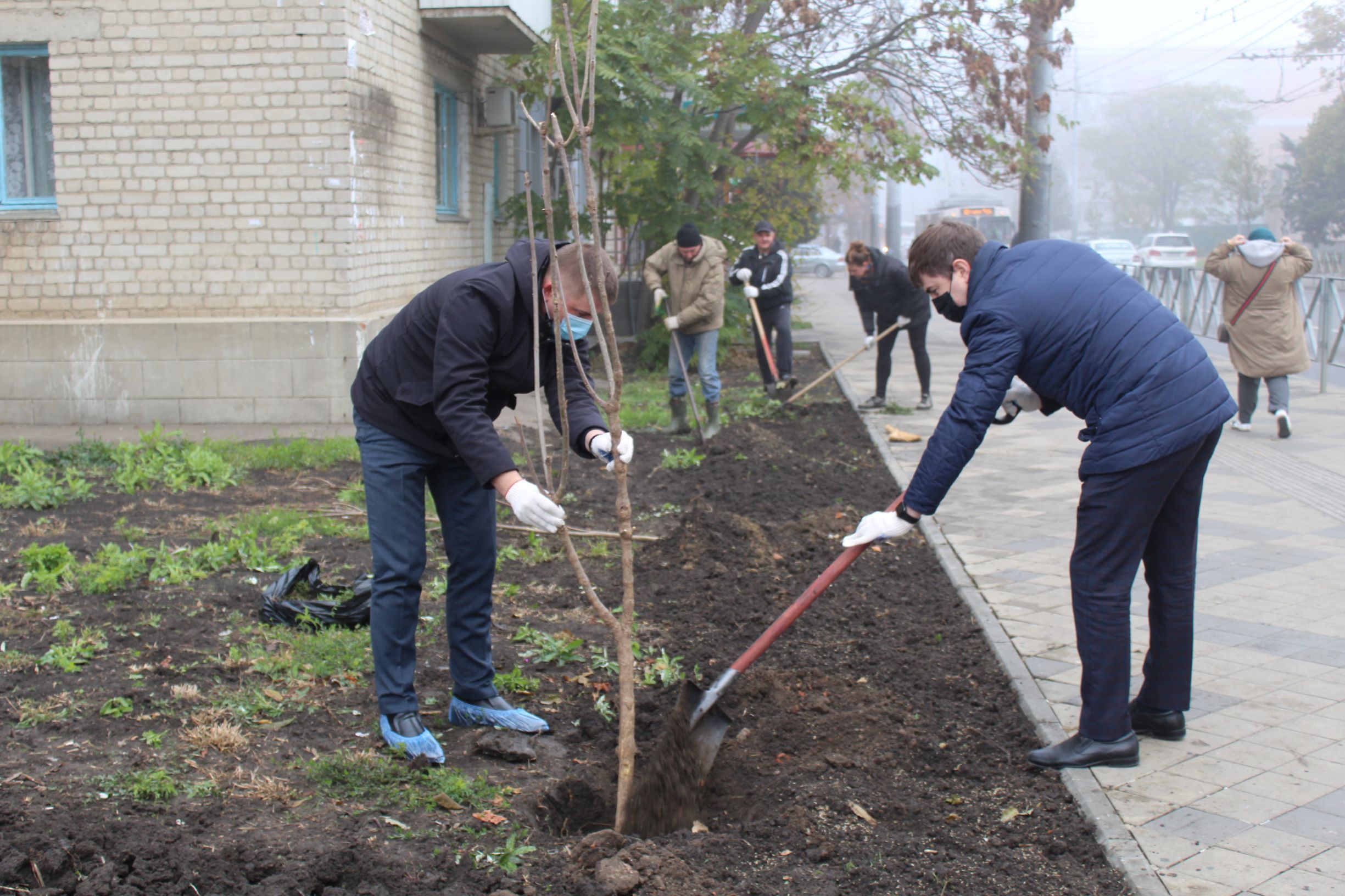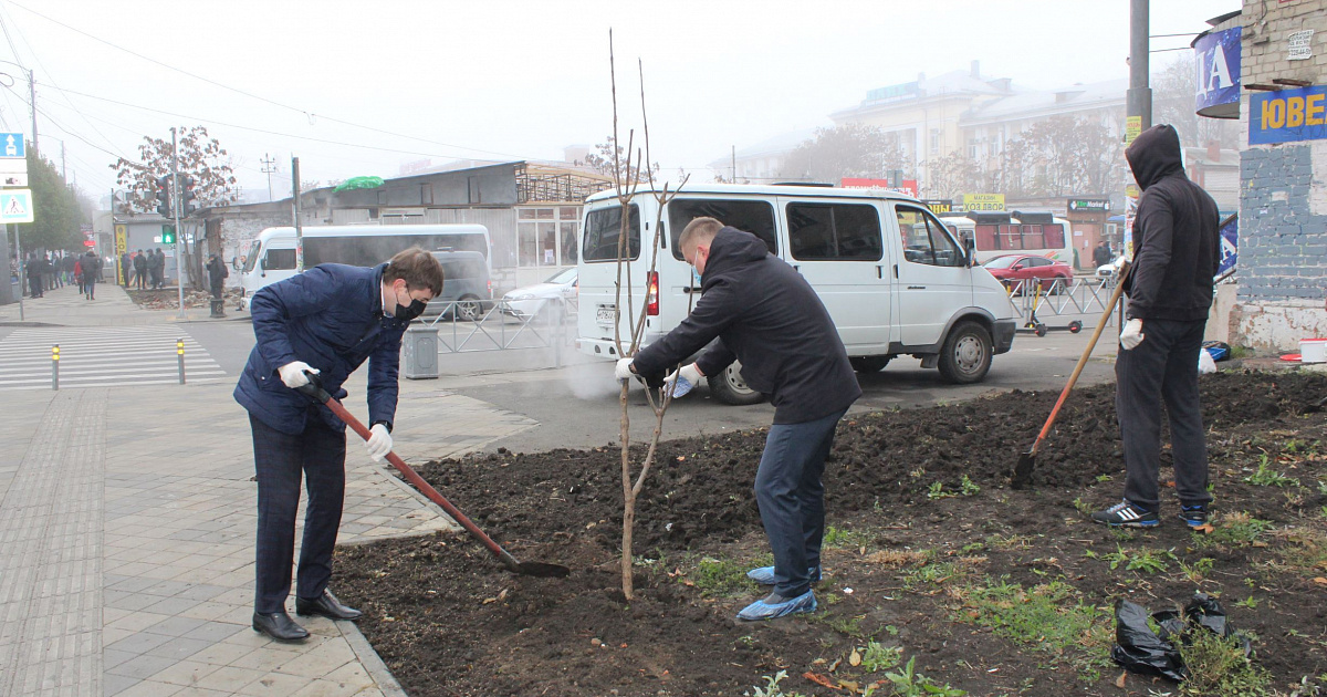 — пересечение улиц Калинина и Октябрьской — осуществлена высадка саженцев деревьев и посев газонной травы;