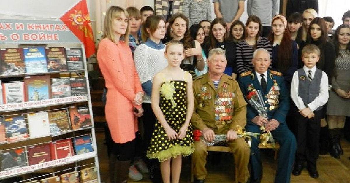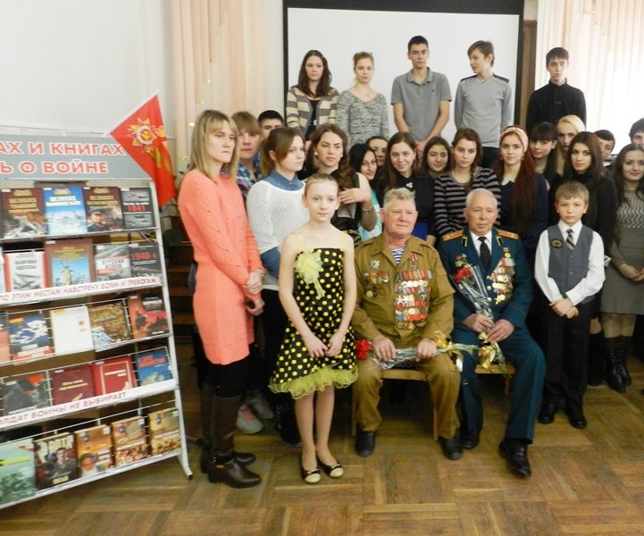 В читальном зале ЦГБ им. Н. А. Некрасова прошла церемония старта месячника «Есть память – без забвенья. Есть слава – без конца!». На нее были приглашены освободитель Краснодара и Кубани, ветеран ВОВ Дмитрий Никитович Шлыков, майор, участник боевых действий в Афганистане, ликвидатор аварии на Чернобыльской АЭС Юрий Лаврентьевич Григораш, полковник в отставке, ветеран афганской войны Юрий Александрович Шевченко, а также студенты Краснодарского муниципального медицинского института высшего сестринского образования и курсанты военных учебных заведений.
