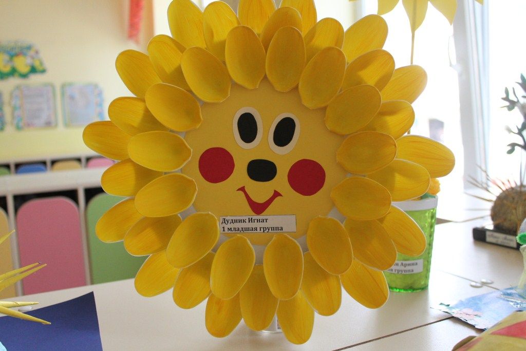Солнышки были изготовлены из разных материалов: от простого изготовления из бумаги до необычного из пластиковых ложек.