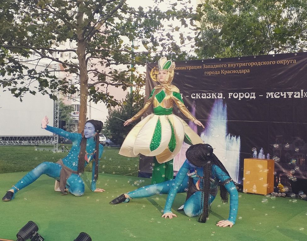Творческие коллективы Дома культуры Западного округа, школа танцев Андрея Ерёмина, а также студенты Финансового университета и Краснодарского торгово-экономического колледжа подготовили концертную программу с конкурсами и подарками от администрации Западного внутригородского округа города Краснодара и компании «ИНВИТРО».