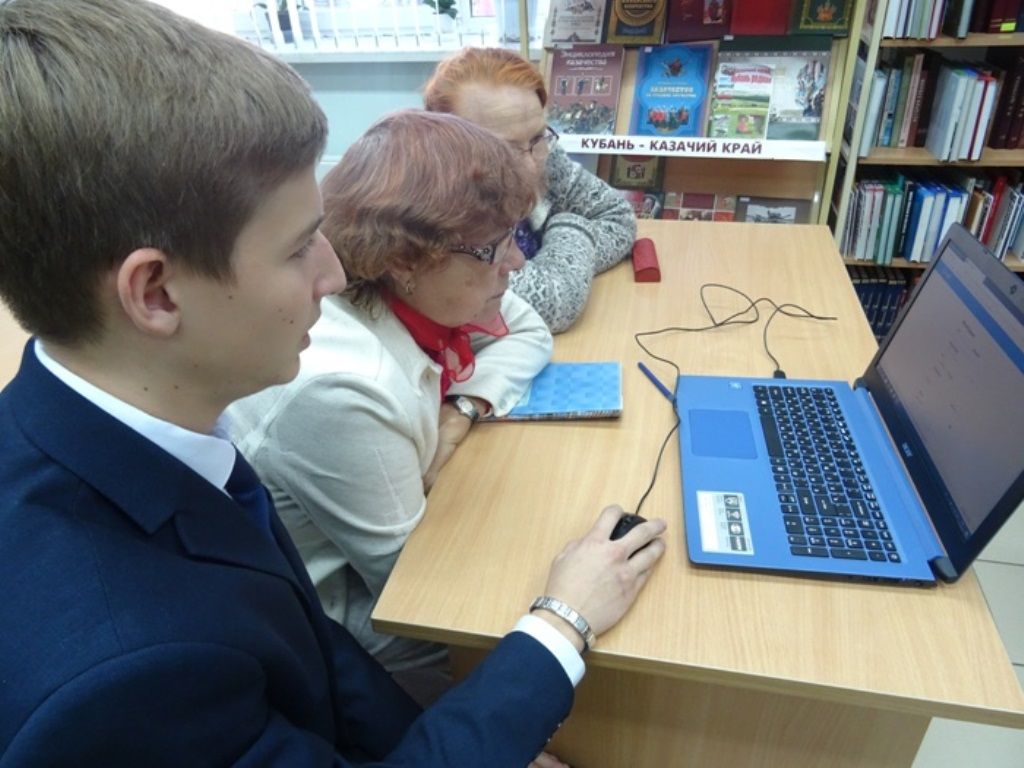 Помощь в освоении новых технологий читателям старшего поколения оказали участники проекта «Доброволец России», учащиеся 10 класса школы № 55 Владислав Лебедь и Захар Белов.