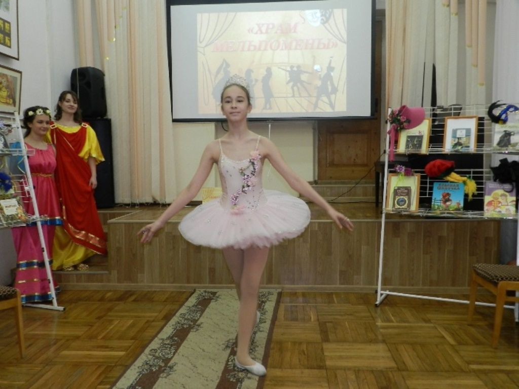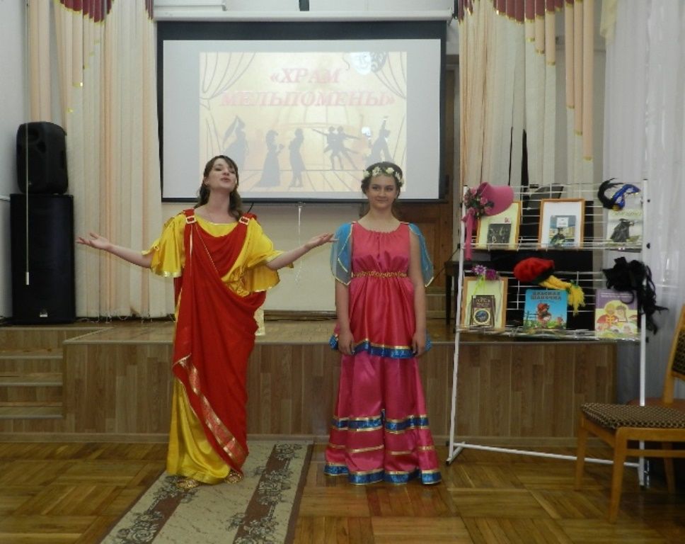 В начале мероприятия зрители «оказались» в Греции, на Олимпе, где музы Мельпомена и Талия рассказали о зарождении театра, а обворожительная муза Терпсихора порадовала присутствующих своим искусством – танцем. С театральных подмостков библиотеатра звучали отрывки из произведений А. С. Пушкина «Евгений Онегин» , А. Н. Островского «Гроза», С. Я. Маршака «Старуха, дверь закрой».