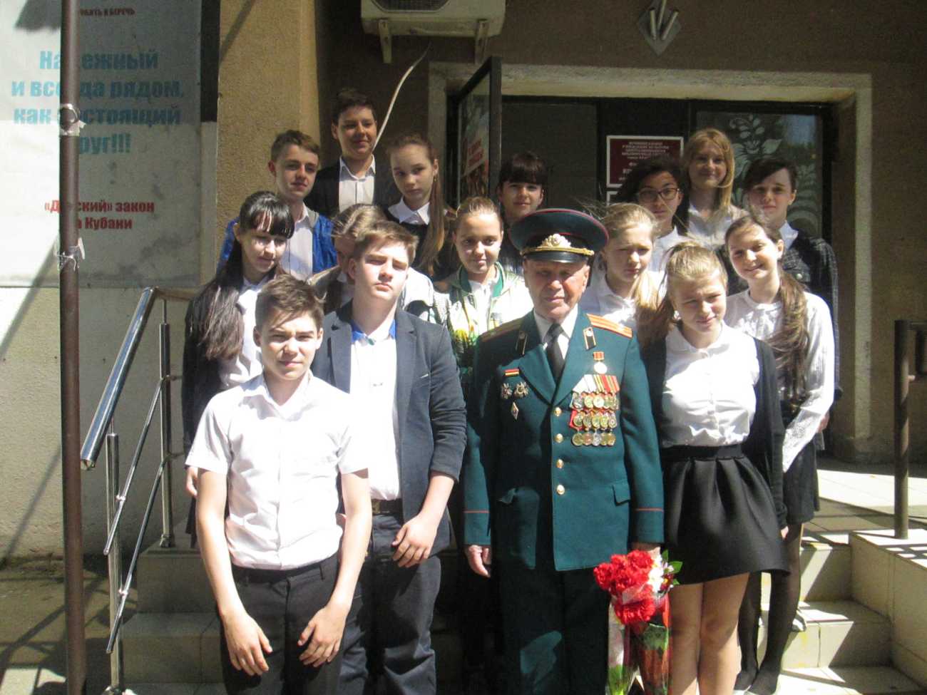 Участники урока мужества поблагодарили организаторов за приглашение на мероприятие, вручили ветерану цветы, сфотографировались с ним на память.
