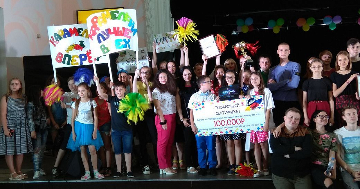Команда «Карамельки» получила подарочный сертификат от главы муниципального образования город Краснодар Евгения Первышова на 100 тысяч и право представлять город Краснодар в юношеской Лиги КВН в городе Анапа осенью.