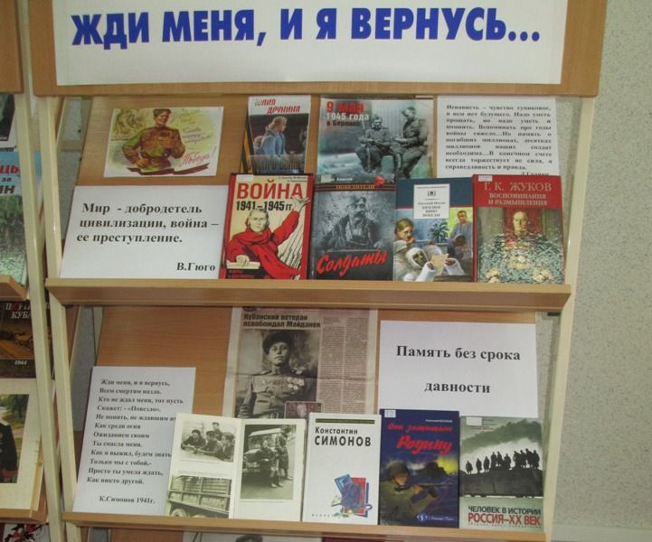 30 января 2015В читальном зале библиотеки прошла литературно-музыкальная композиция «Жди меня, и я вернусь…», посвященная 70-ой годовщине Победы в Великой Отечественной войне.