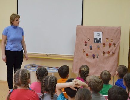 «…В каждой семье есть ордена и медали, которые принесли с войны ваши прадедушки и дедушки, прабабушки и бабушки. Они бережно хранятся в красивых шкатулках и заветных коробочках. Каждый праздник Победы бывшие бойцы надевают свои ордена и медали и идут встречаться со своими боевыми товарищами, однополчанами. Они гордятся своими наградами…» такими словами педагогов начиналось занятие.