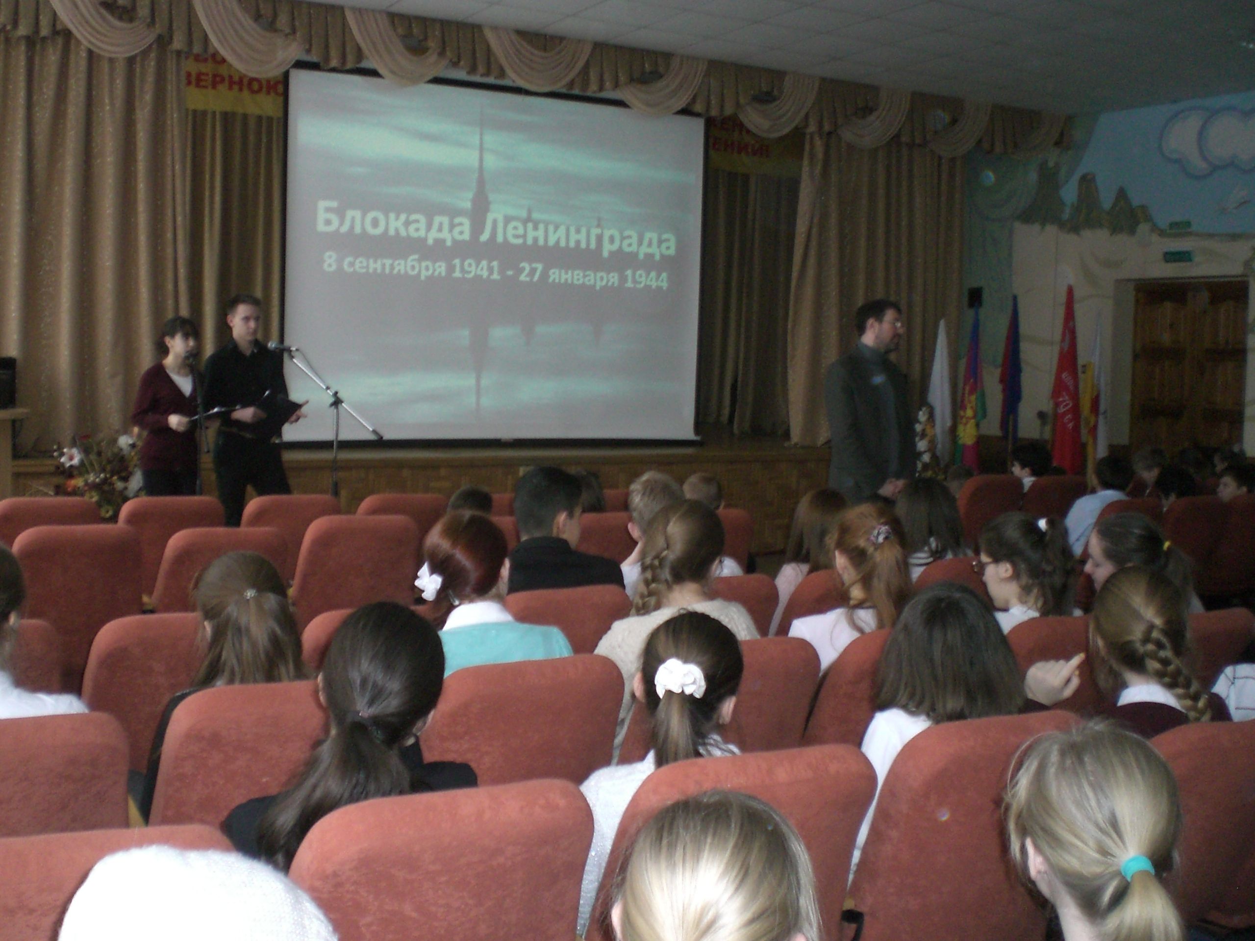 В общешкольном уроке мужества «Подвиг Ленинграда» приняли участие учащиеся