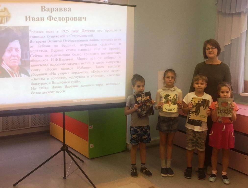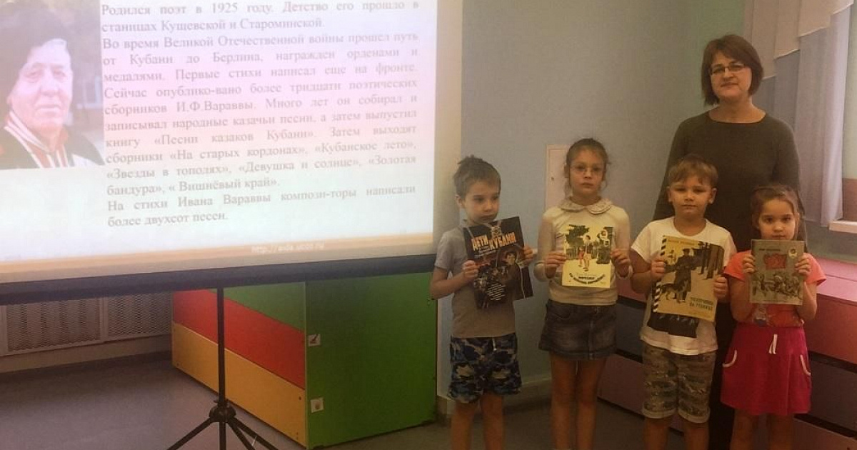 Педагоги Мария Манукян и Татьяна Буренкина рассказали детям о значении стихов в жизни народа нашей страны в дни Великой Отечественной войны. Ребята познакомились с биографией кубанских писателей. Прослушали произведения наших земляков о Великой Отечественной войне. Педагоги показали, как при помощи стихов можно отразить не только красоту жизни, но и трагизм, и весь ужас беспощадной войны.