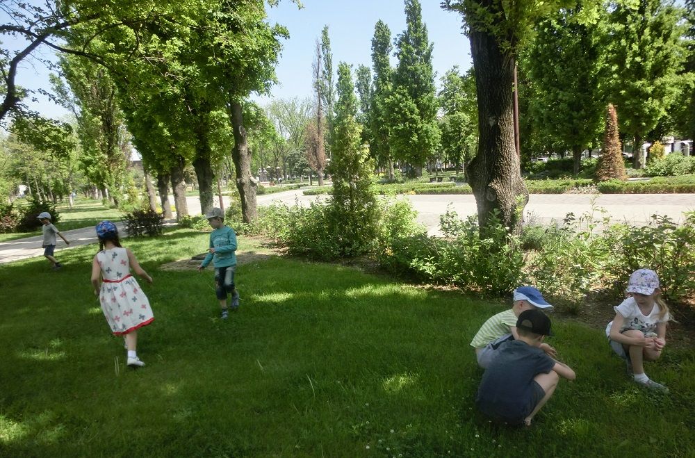 Ребята гуляли по парковым дорожкам, окруженным аккуратными кустиками, и наконец, попали под тень многолетних деревьев. Воспитатели рассказали ребятам о деревьях насаждающих парк и об огромном значении их для жизни людей. Ребята узнавали знакомые растения и кустарники, наблюдали за муравьями и божьими коровками и играли в