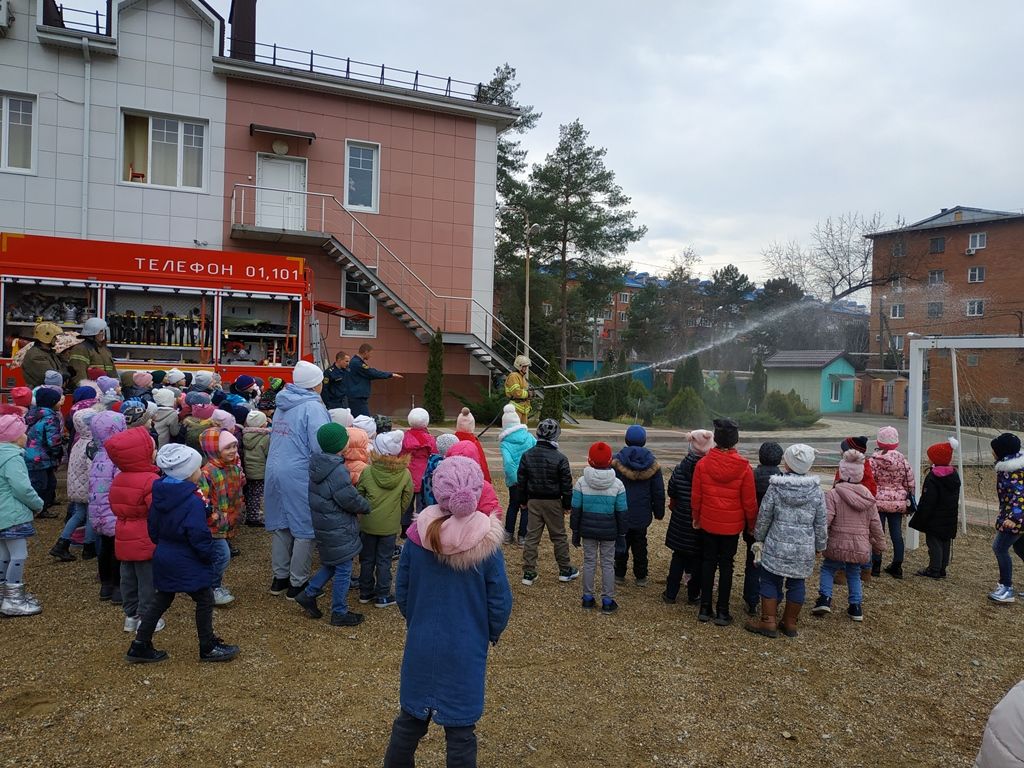 Тематическое занятие с воспитанниками сада провели сотрудники ФГКУ «12 отряд ФПС по Краснодарскому краю». Они познакомили ребят с профессией пожарного, а также напомнили о том, как нужно вести себя в случае возгорания.