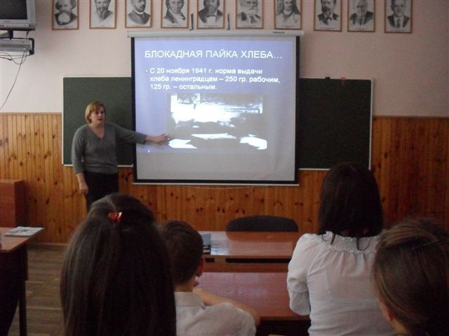 30 января 2012В рамках месячника оборонно–массовой и военно-патриотической работы, с целью формирования нравственной культуры учащихся, уважительного отношения к исторической памяти народа во всех общеобразовательных учреждениях Западного внутригородского округа в период 26-27 января 2012 года прошли уроки мужества, посвященные 68-й годовщине прорыва блокады Ленинграда.