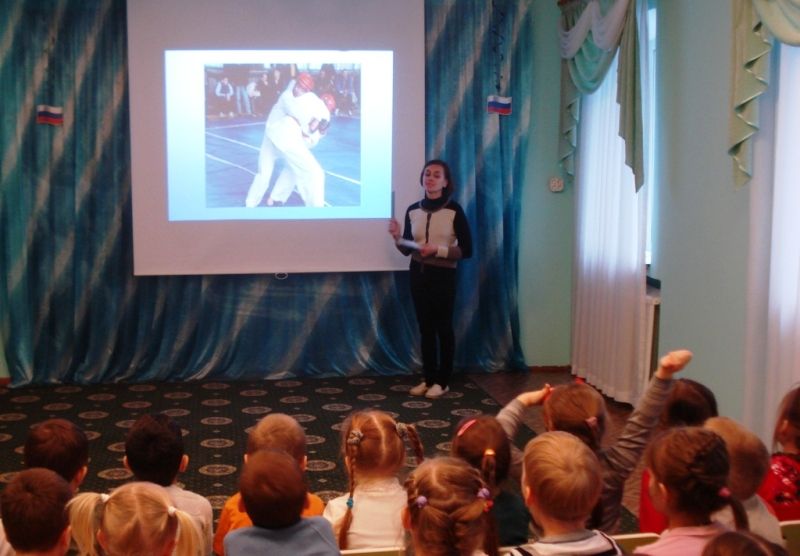 А днем позже ребят пригласили на презентацию военно-прикладных видов спорта. Воспитанники старших групп с интересом смотрели слайд-шоу с фотографиями самбистов, лыжников и всадников. Для детей стало открытием то, что многие виды спорта связаны с армией, используются в военных действиях. Ребята делились своими впечатлениями от просмотра и спорили, какой спорт интереснее.