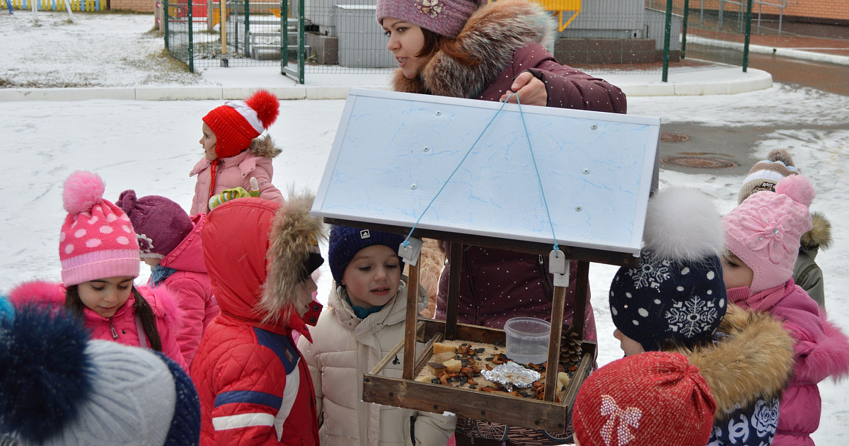 Дети с интересом наблюдали, как к кормушке подлетали птички и лакомились оставленными угощениями.