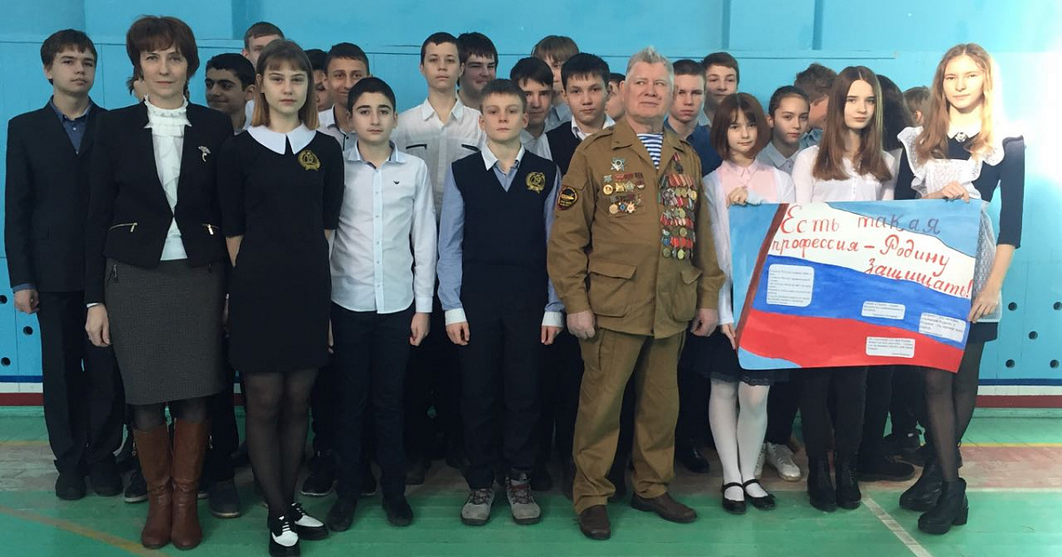 Юрий Лаврентьевич рассказ ребятам о военных конфликтах в Афганистане и Чечне, долге и героизме российских офицеров.