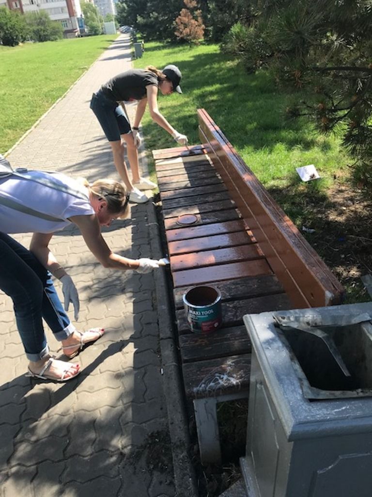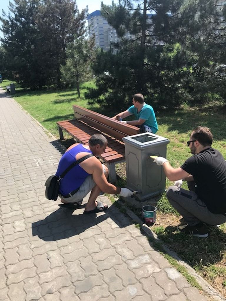 Сегодня сотрудники администрации Краснодара и Западногг округа работали в Юбилейном микрорайоне. На аллее возле домов № 23, 27 и 31 по проспекту Чекистов они отремонтировали и покрасили 13 лавочек, а также обновили краску на почти двух десятках урн.