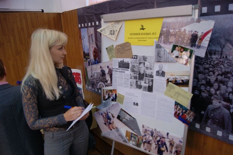 Рядом открылась тематическая экспозиция «Хроники боевых лет Западного округа», где желающие могли ознакомиться с документами, записками и фотографиями фронтовиков, собранными в Книги памяти, и фронтовыми реликвиями.