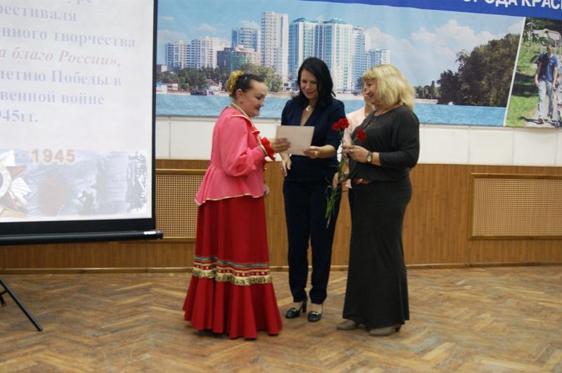 Сначала гостям и членам жюри представили выставку работ декоративно – прикладного творчества и изобразительного искусства. На суд публики свое творчество, посвященное России и Кубани, представили 10 участников – члены общественных организаций и органов ТОС.