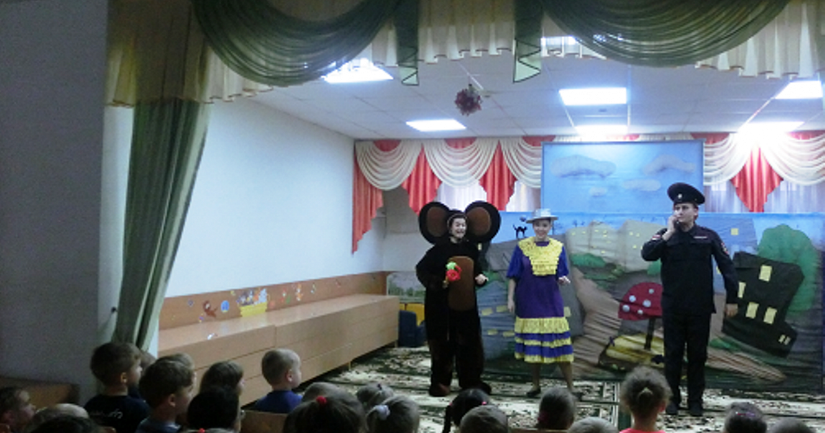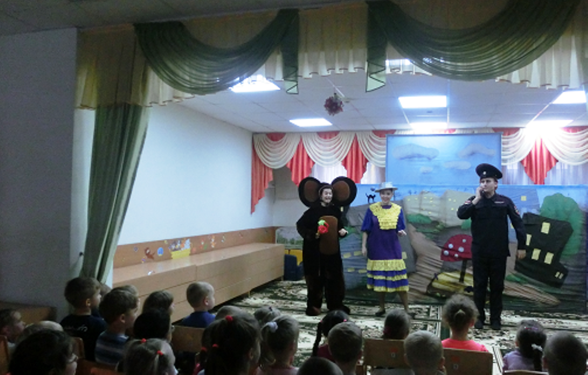В гости к ребятам пришли сказочные персонажи: Чебурашка, Крокодил Гена, Шапокляк и инспектор Свистулькин. Вместе с дошколятами Чебурашка и Шапокляк разбирались, что такое добрые поступки. Театрализованная игра позволила ребятам решить многие проблемные ситуации и раскрыть суть проблемных вопросов, связанных с безопасностью в окружающем мир.