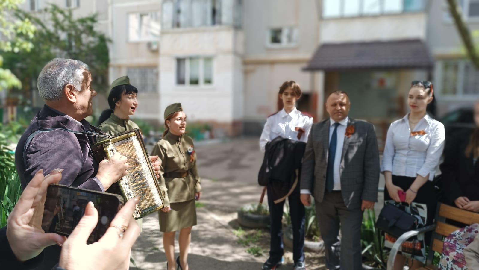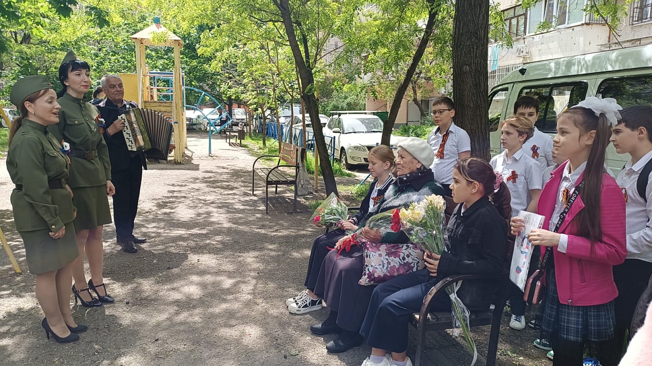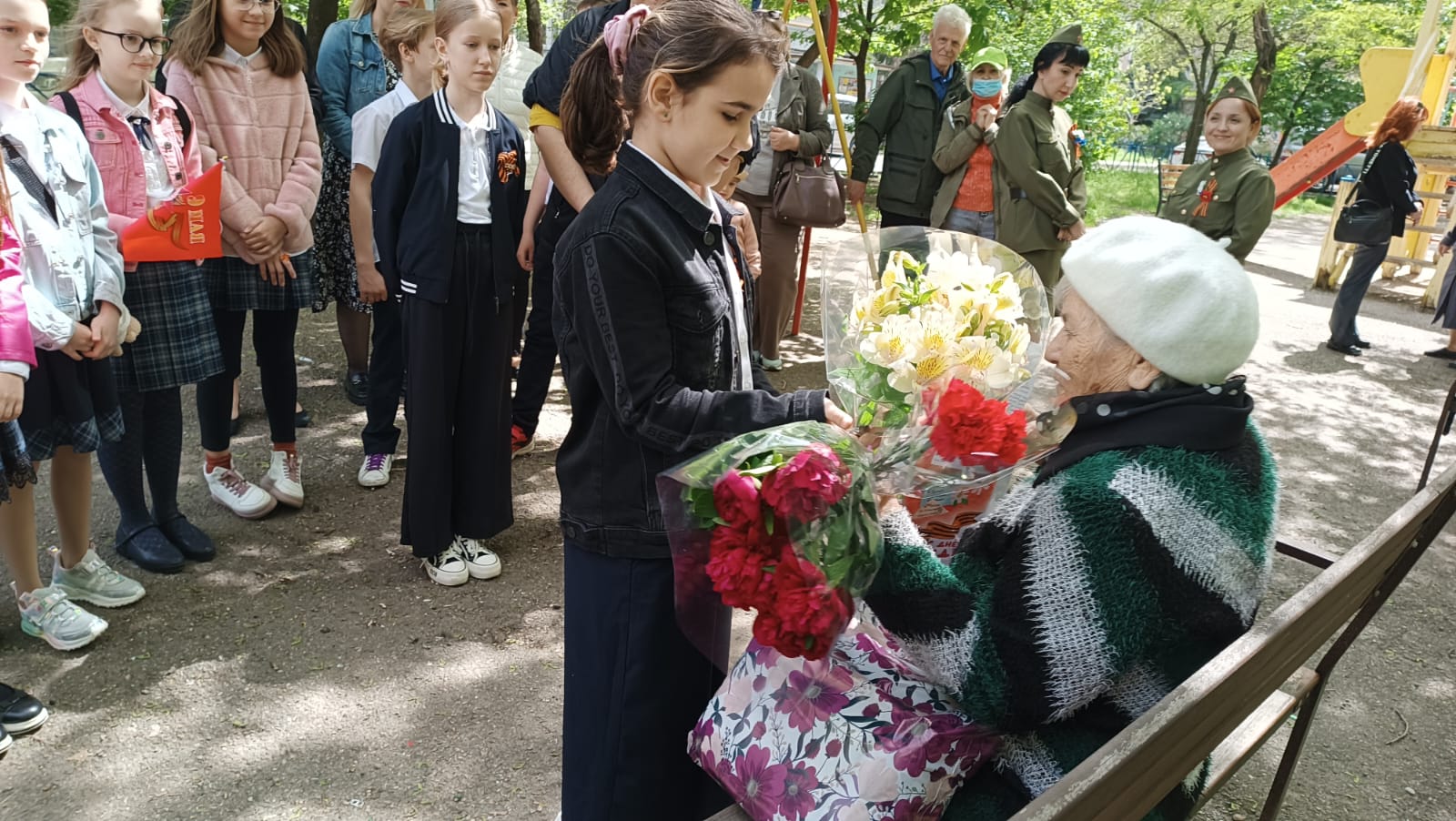 5 мая 2023С песнями военных лет, подарками и поздравлениями пришли в гости сегодня сотрудники администрации Западного округа и ученики из школ № 55, 89 и 90.