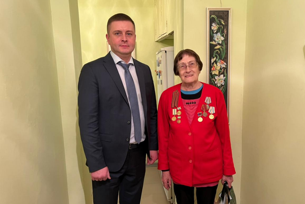 Заместители главы администрации Западного округа: Юрий Лобач, Дмитрий Ковалёв, Илья Каширин и Светлана Смольская с подарками и пожеланиями здоровья и благополучия посетили ветеранов.