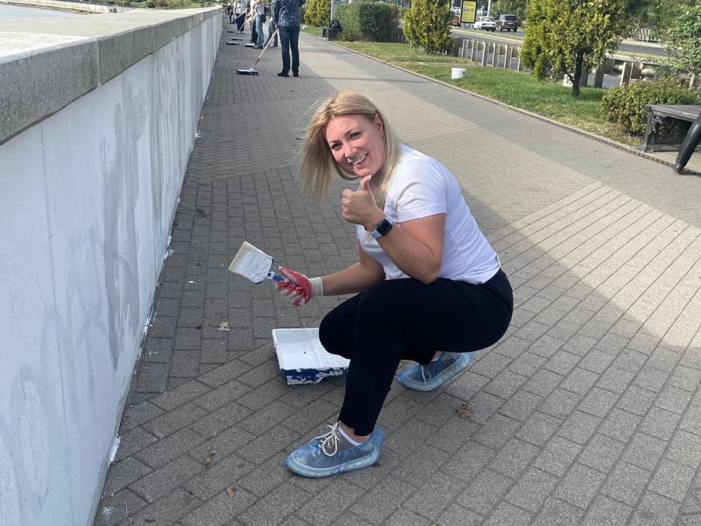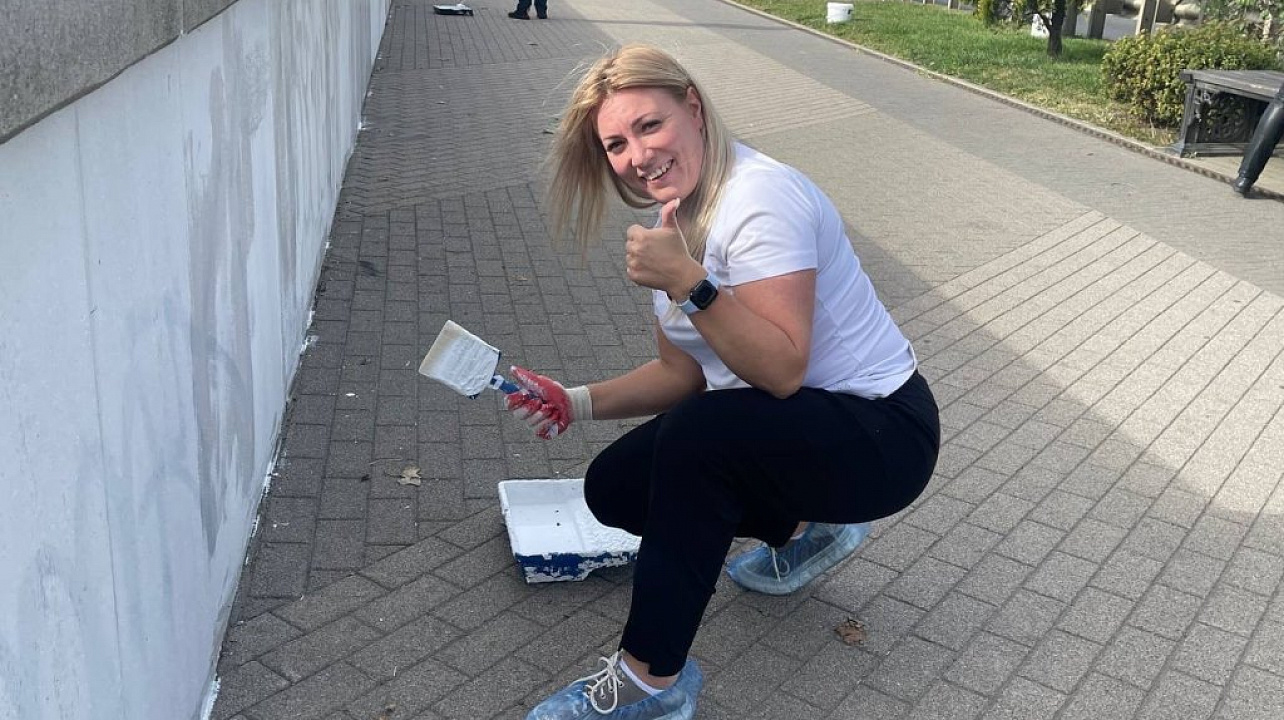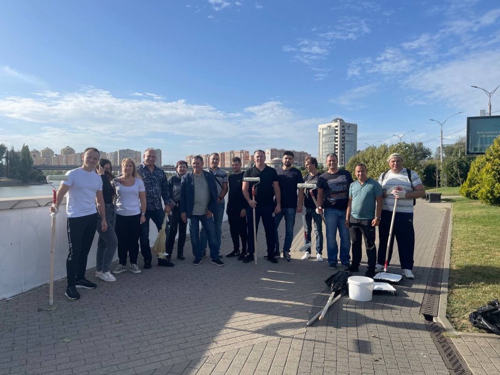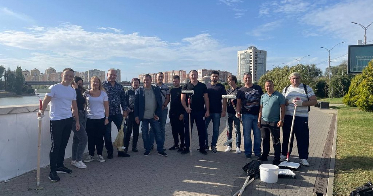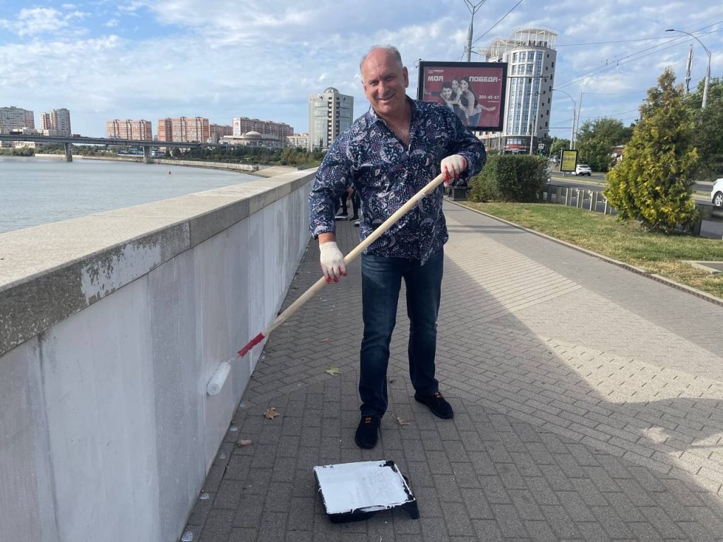 Трудовой коллектив дружно закрасили граффити на бетонном парапете вдоль набережной в излюбленном месте прогулок всех краснодарцев.