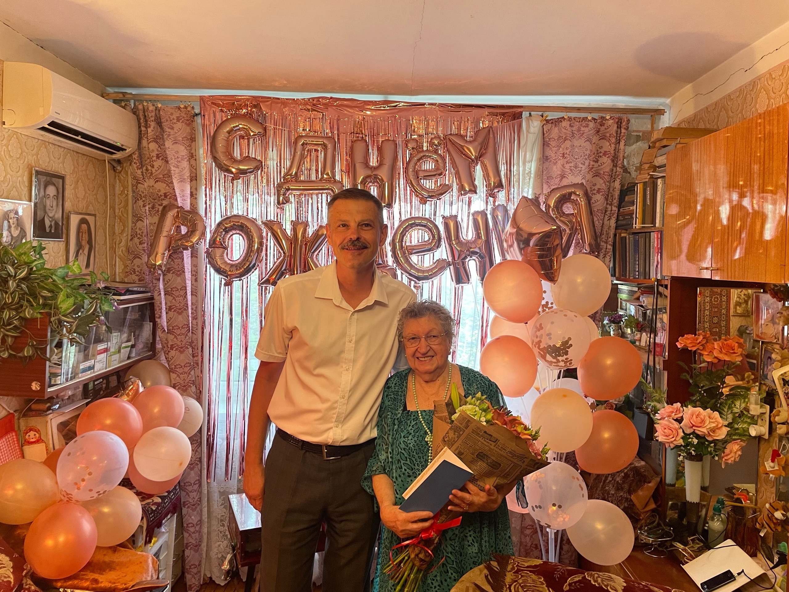 Поздравить ветерана со знаменательным событием пришел заместитель главы администрации Западного округа Роман Мишенин, пожелал долгих лет жизни, здоровья и бодрости духа, подарил цветы и подарки.