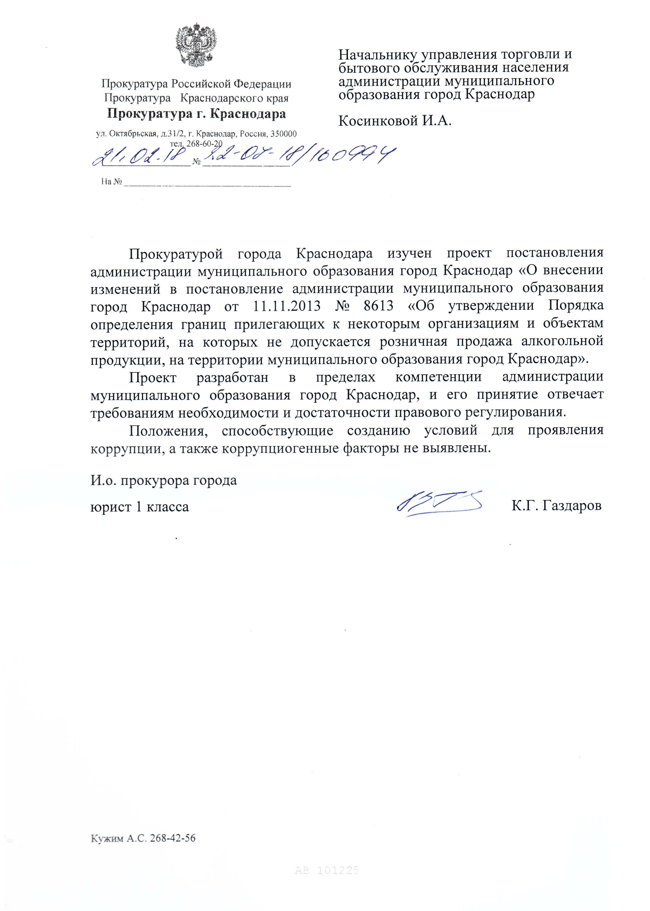 2 февраля 2018Наименование разработчика: Управление торговли и бытового обслуживания населения администрации муниципального образования город Краснодар