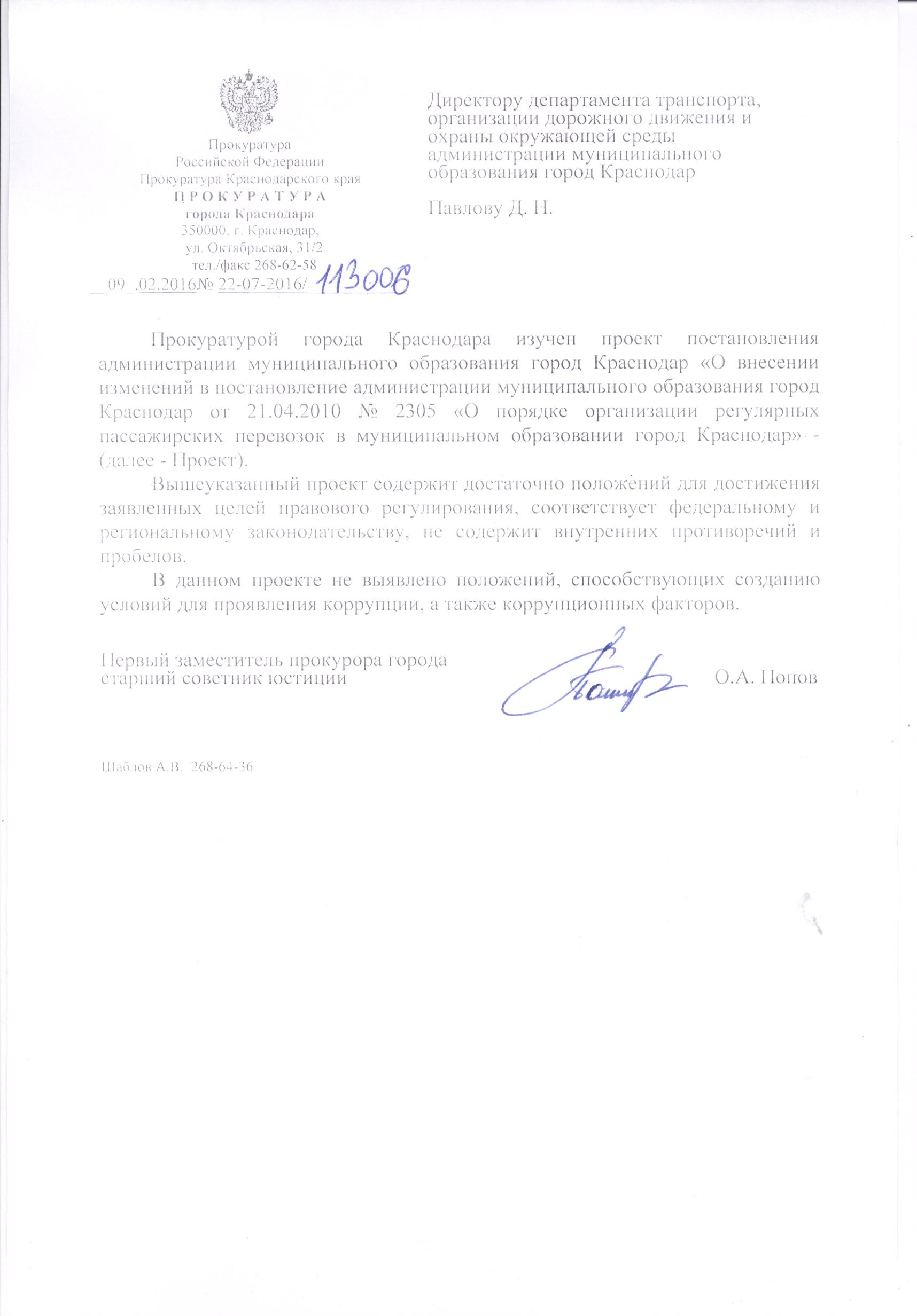 4 февраля 2016Наименование разработчика: Департамент транспорта, организации дорожного движения и охраны окружающей среды администрации муниципального образования город Краснодар