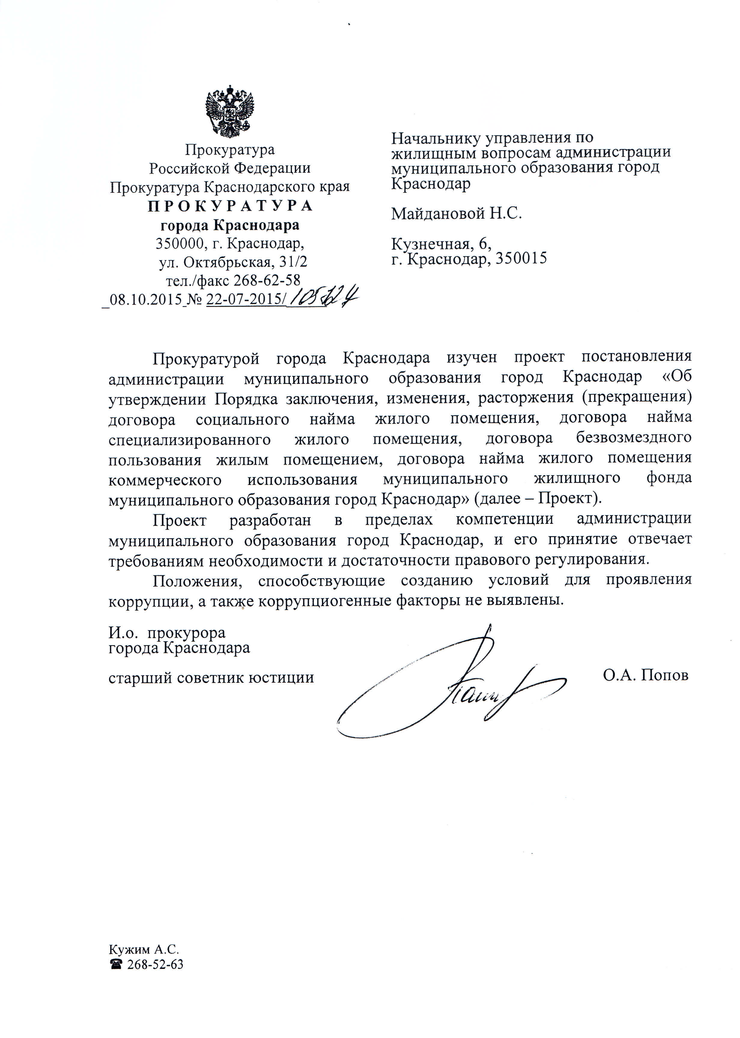 5 ноября 2015Наименование разработчика: Управление по жилищным вопросам администрации муниципального образования город Краснодар